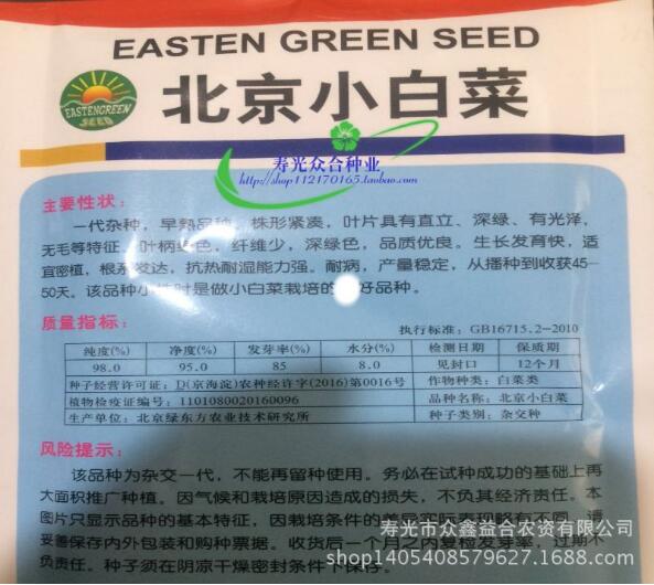 生長發(fā)育快,適宜密植,根系發(fā)達,抗熱耐濕能力強.耐病,產量穩(wěn)定,從播種到收獲45-50天。該品種小株時是做小白菜栽培