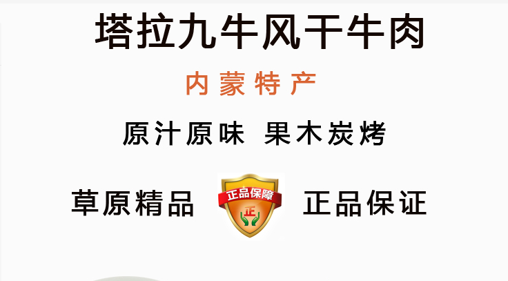 商品名稱:內(nèi)蒙特產(chǎn)手撕風(fēng)干牛肉干 塔拉九牛獨(dú)立包裝 風(fēng)干牛肉干 成吉思汗軍糧 500g