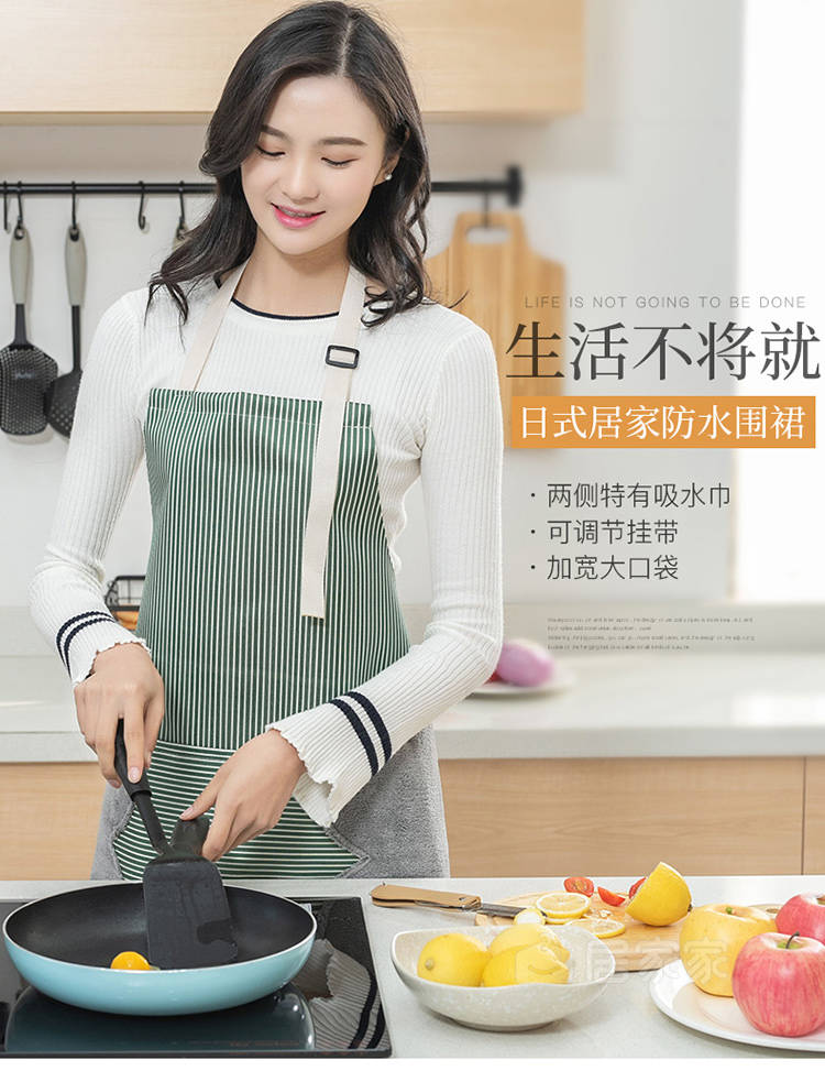 商品名稱:可擦手圍裙女罩衣口袋防水油廚房可愛新款工作服成人做飯勞保干活