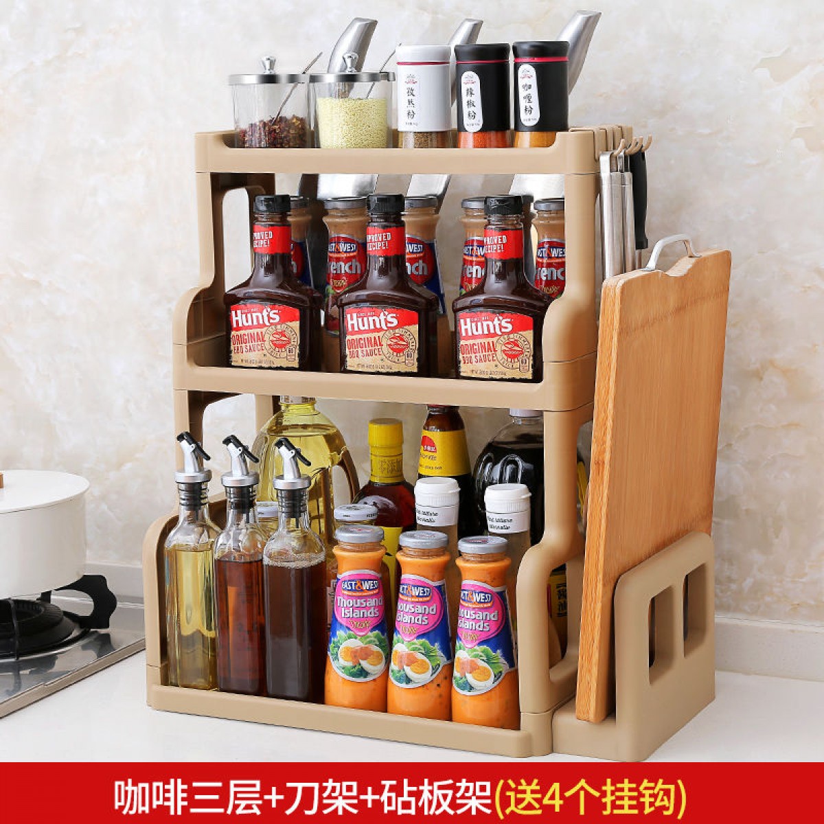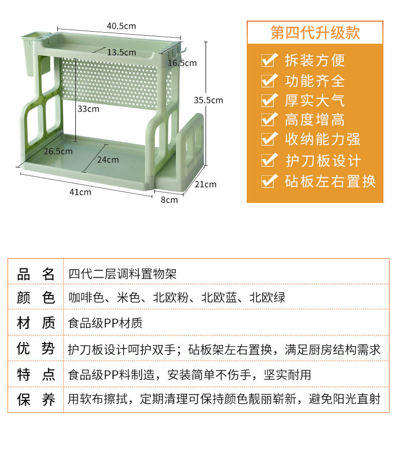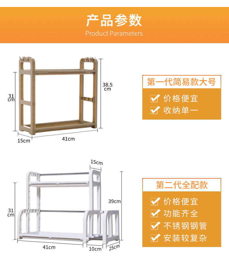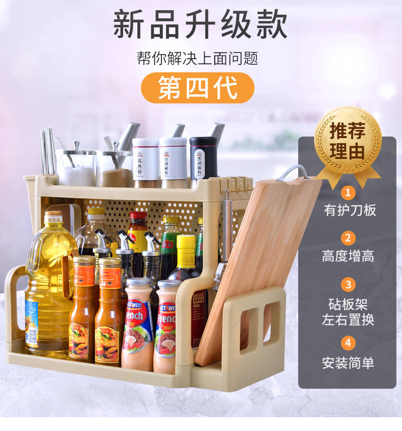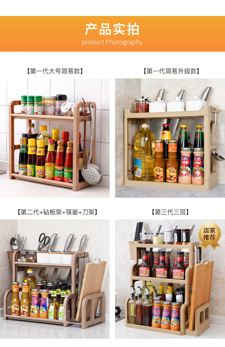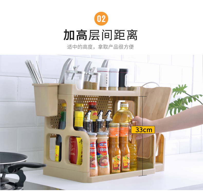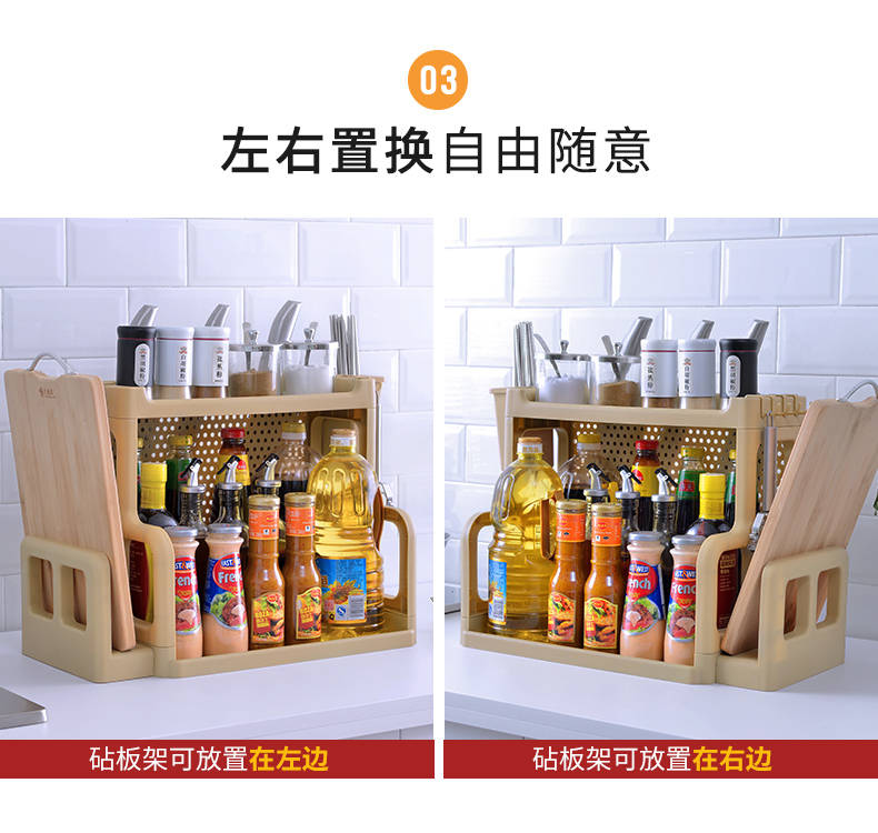 商品名稱:廚房置物架調(diào)料架廚具塑料用品用具收納臺面儲物架多層砧板架子