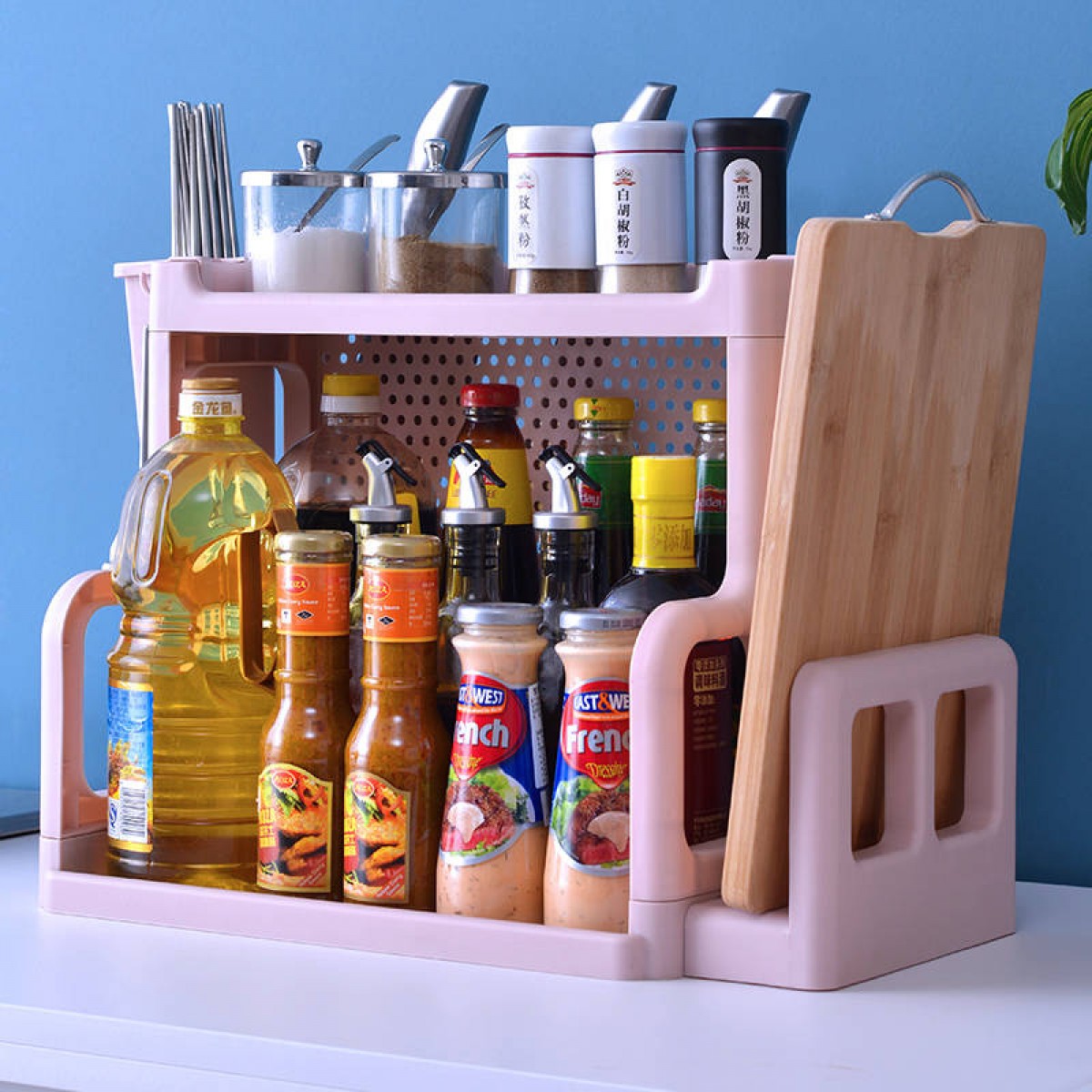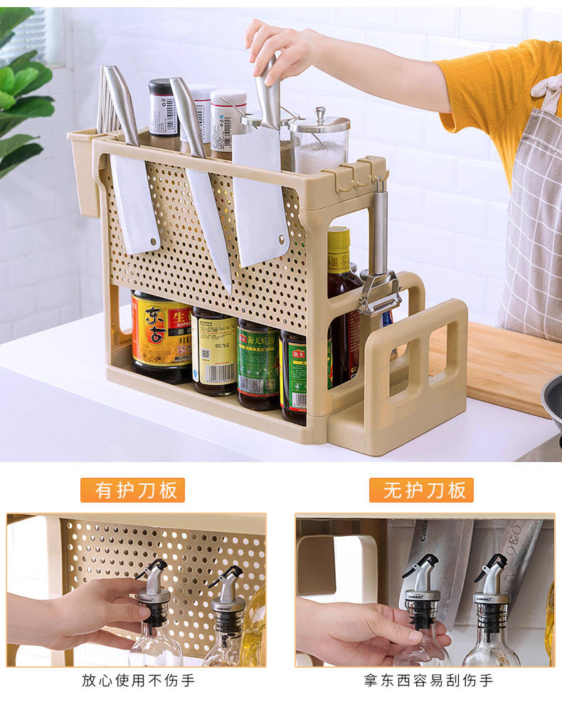 廚房置物架調(diào)料架廚具塑料用品用具收納臺面儲物架多層砧板架子
