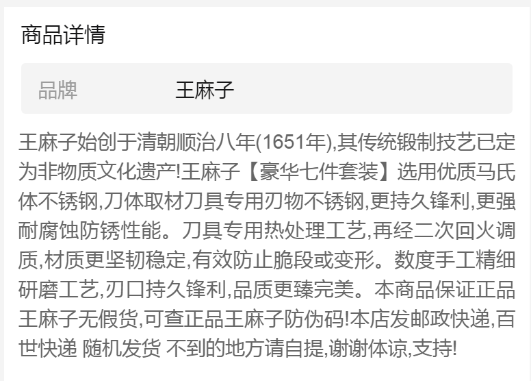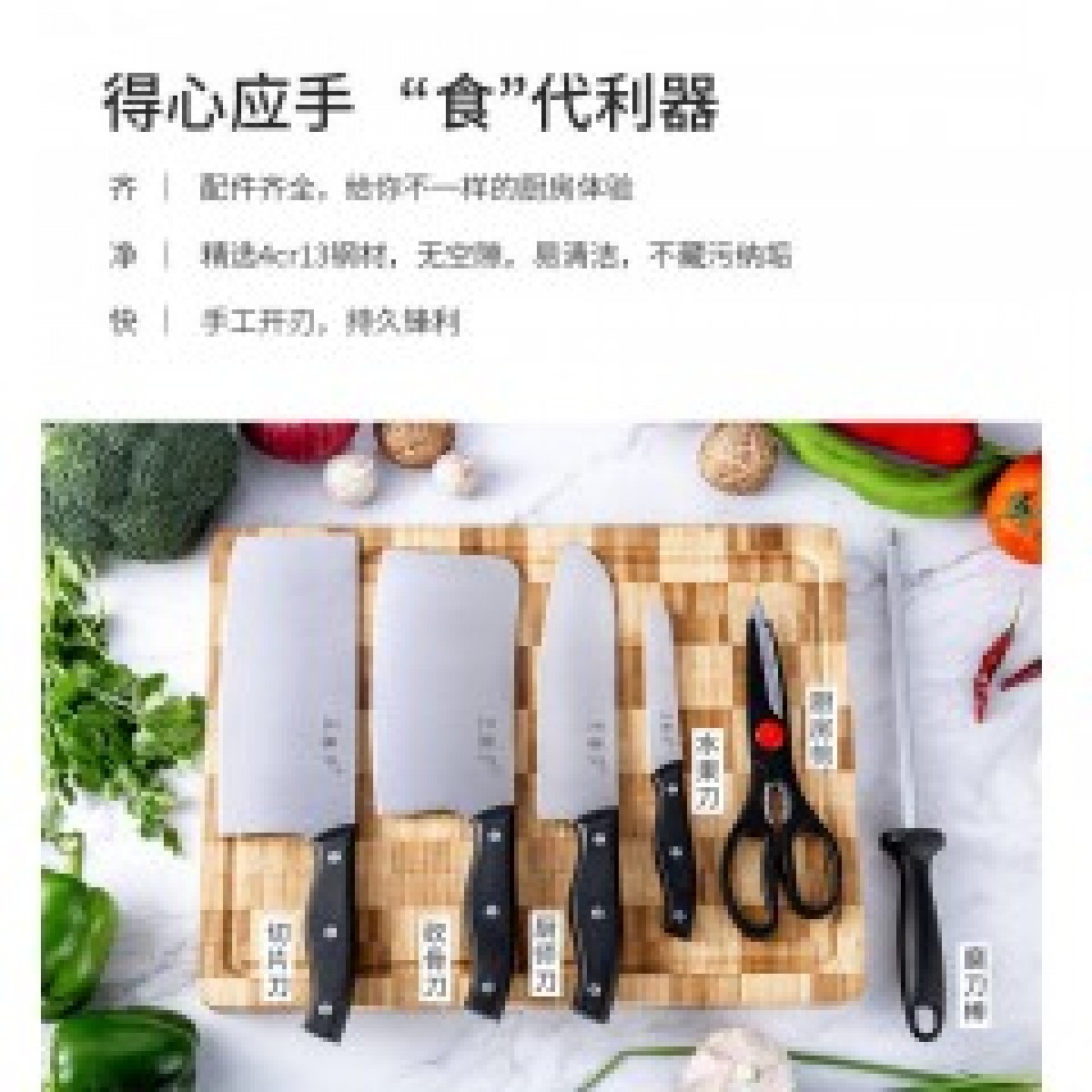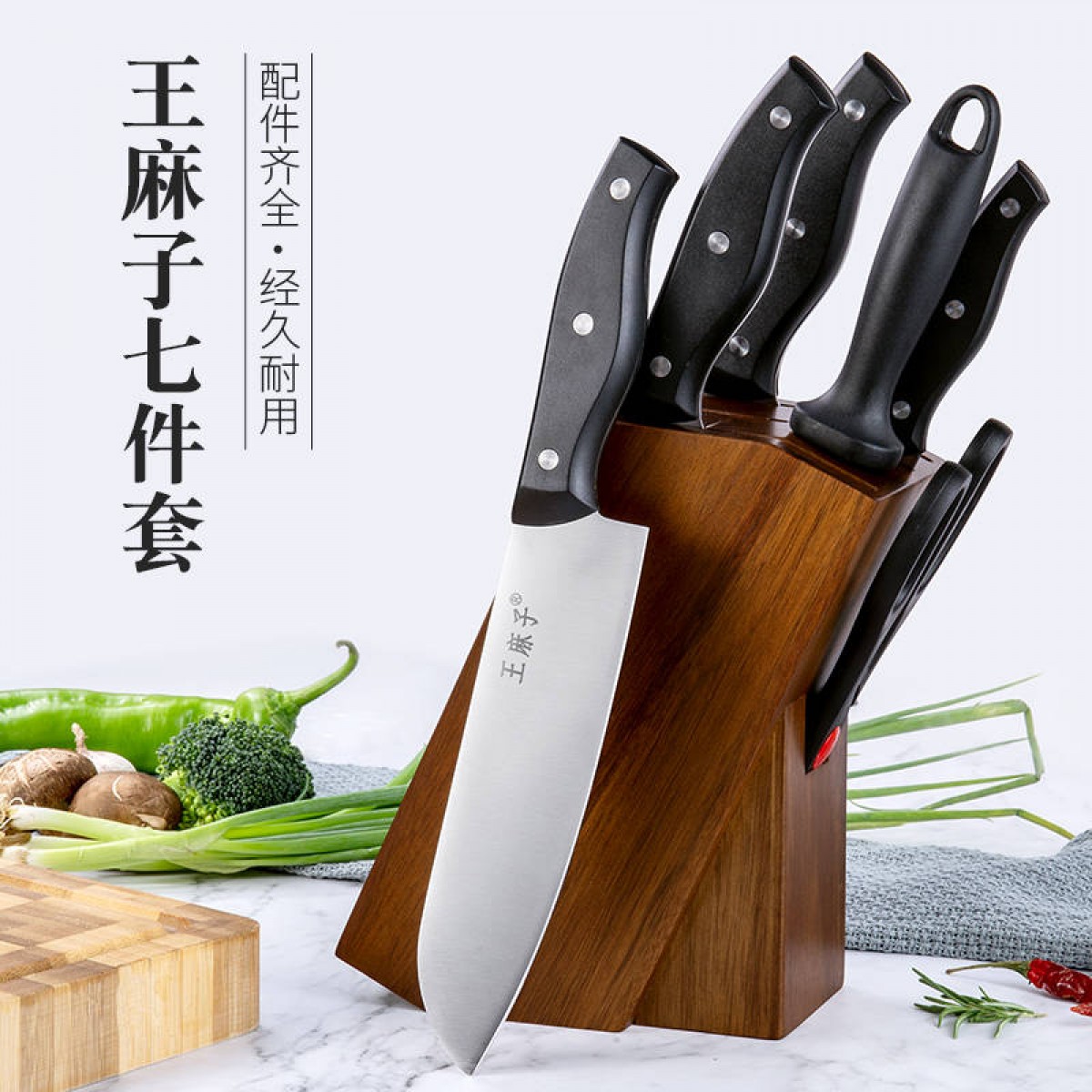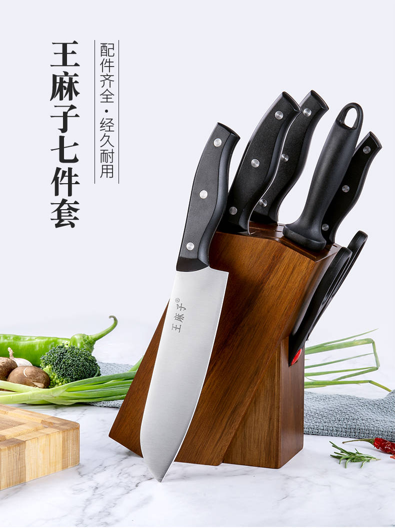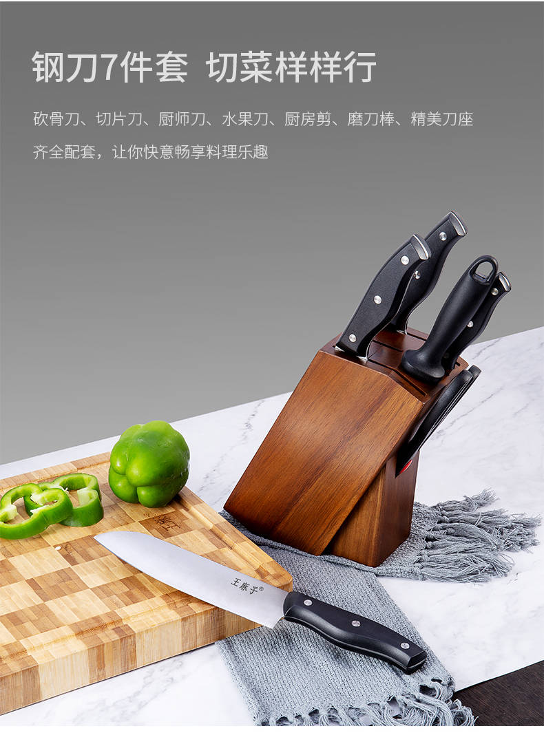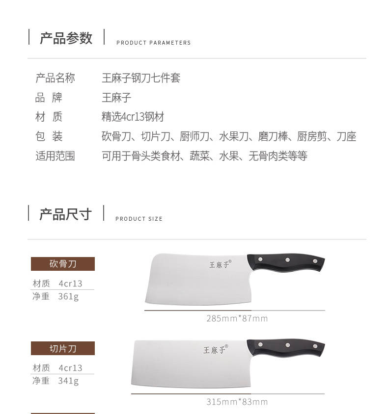 商品名稱:王麻子七件套裝菜刀家用廚房用品刀具砍骨切片切肉水果刀開刃棒
