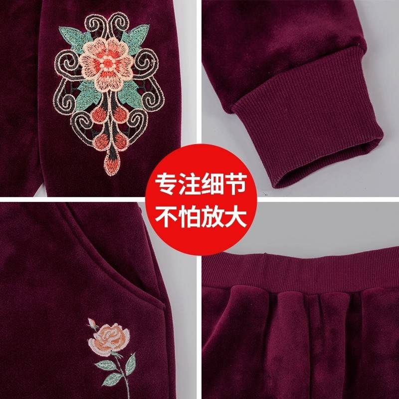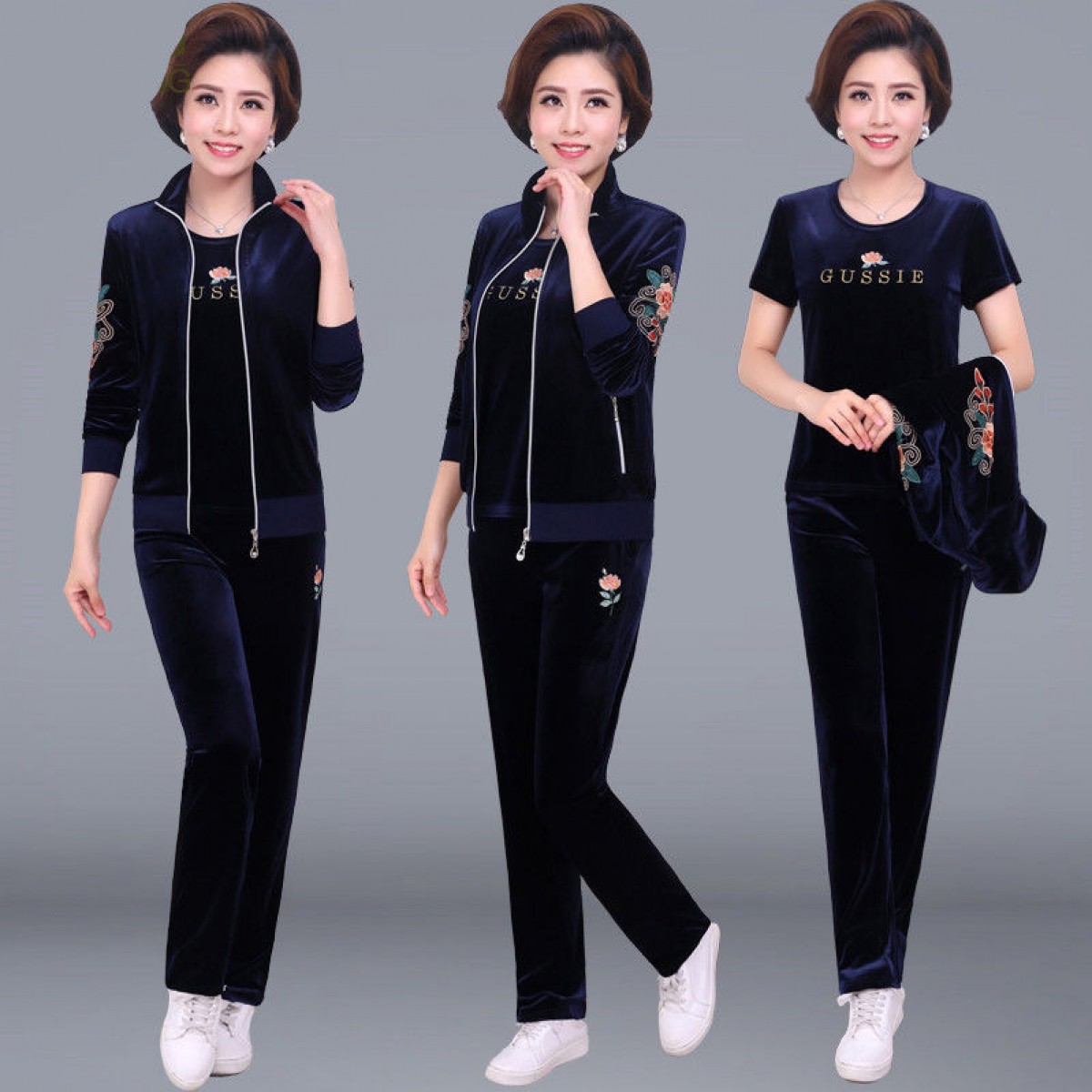 春秋三件套金絲絨套裝媽媽春裝外套中年女裝大碼運(yùn)動(dòng)套裝女