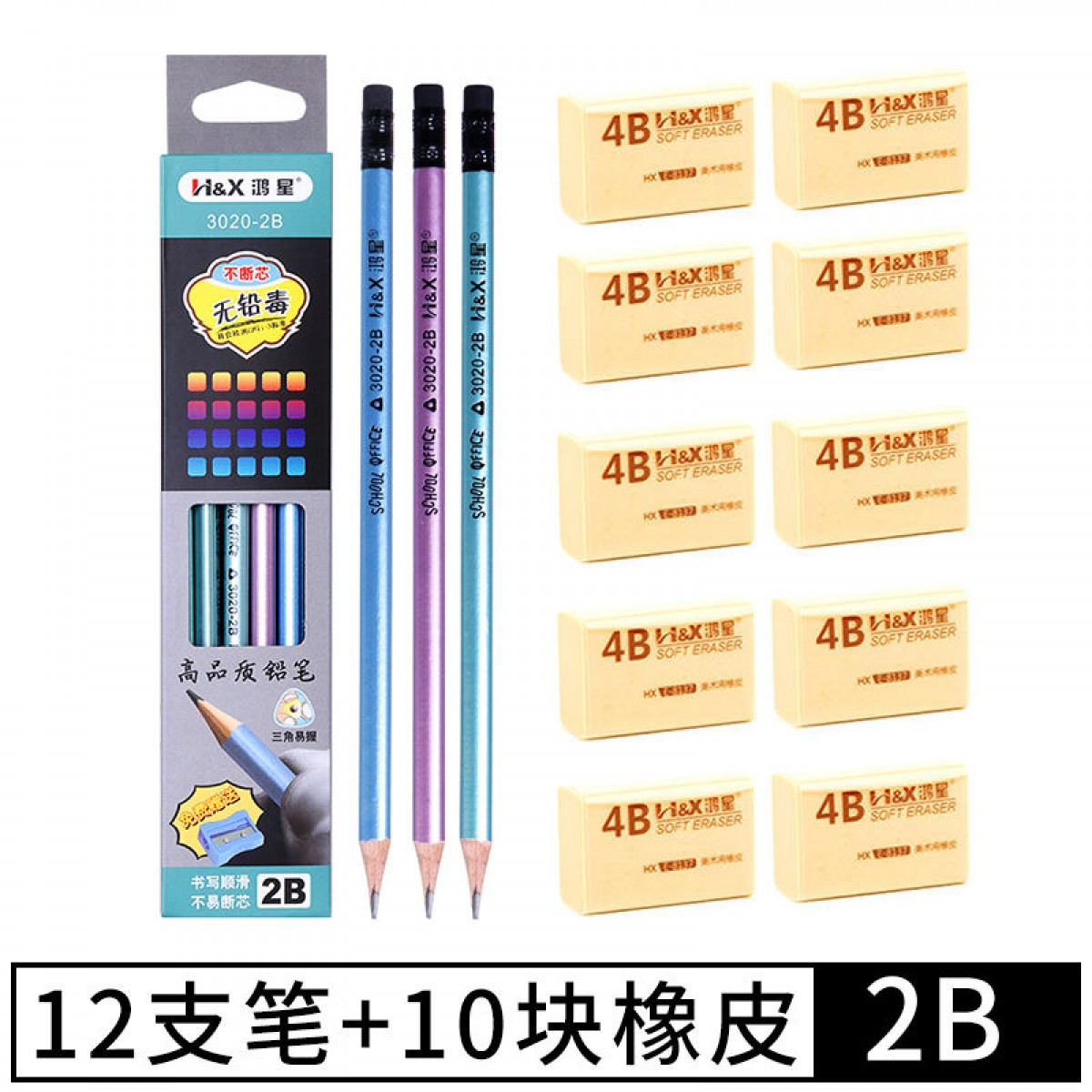商品名稱:考試專用三角2b鉛筆套裝小學生兒童自動筆素描無毒文具