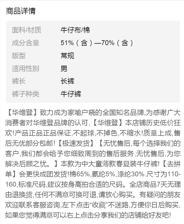 商品名稱:2019新款潮春秋款長褲男童牛仔褲洋氣中大休閑褲兒童褲子