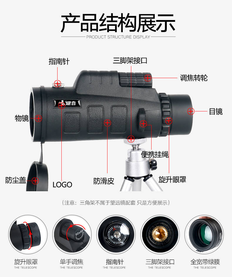商品名稱:50倍單筒成人望遠鏡正品防偽望遠鏡高倍高清微光夜視