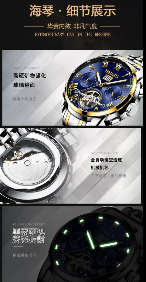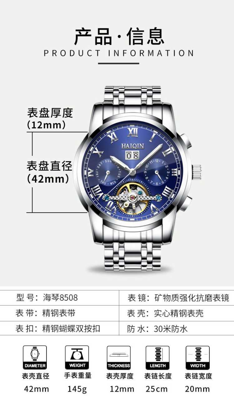 商品名稱:【品牌專柜行貨 瑞士名表】 自動機械表男士手表夜光表防水男表男