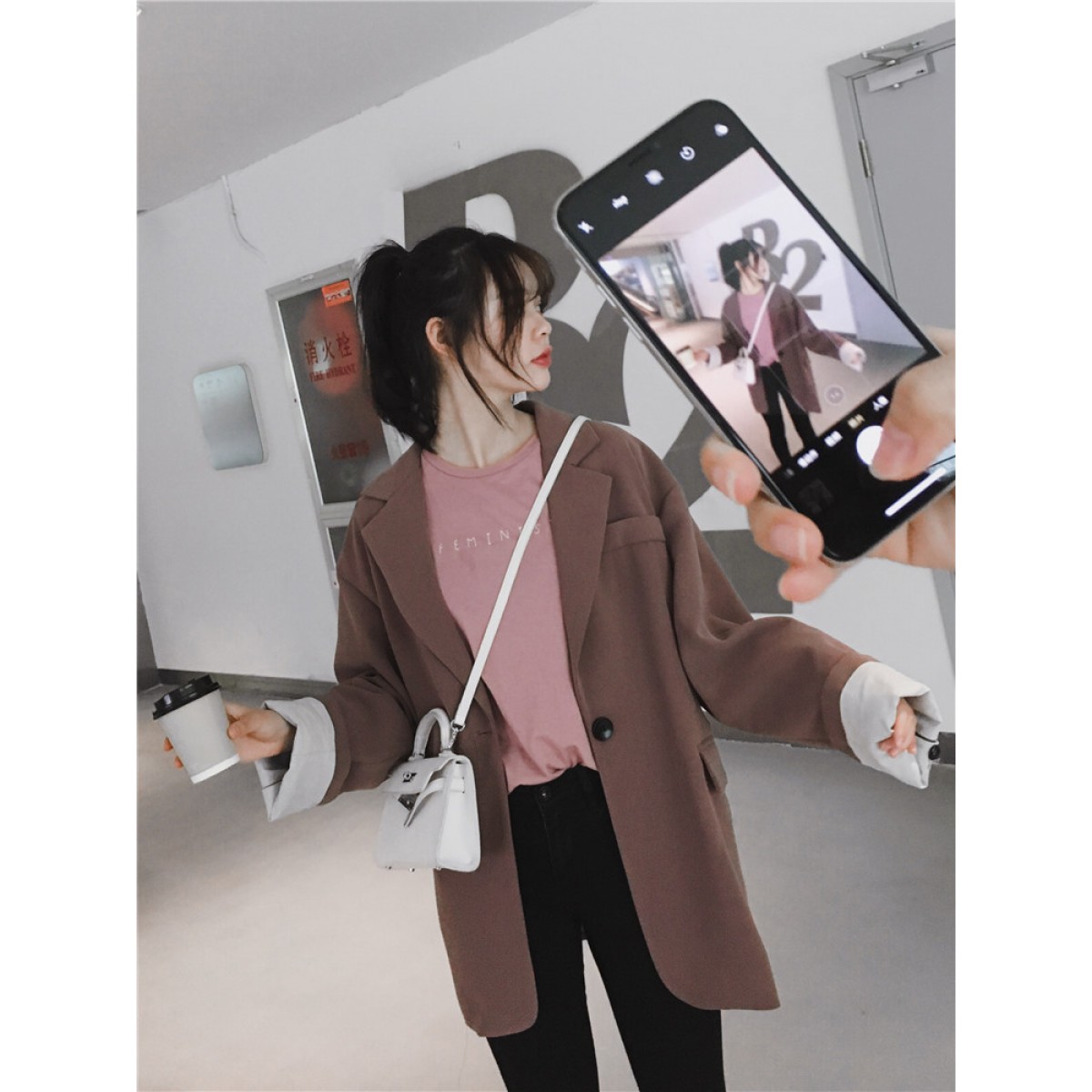 chic小西裝外套女新款女裝韓版寬松春裝網(wǎng)紅學(xué)生bf格子西服潮