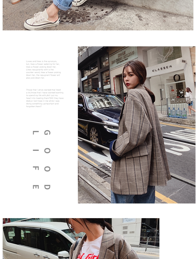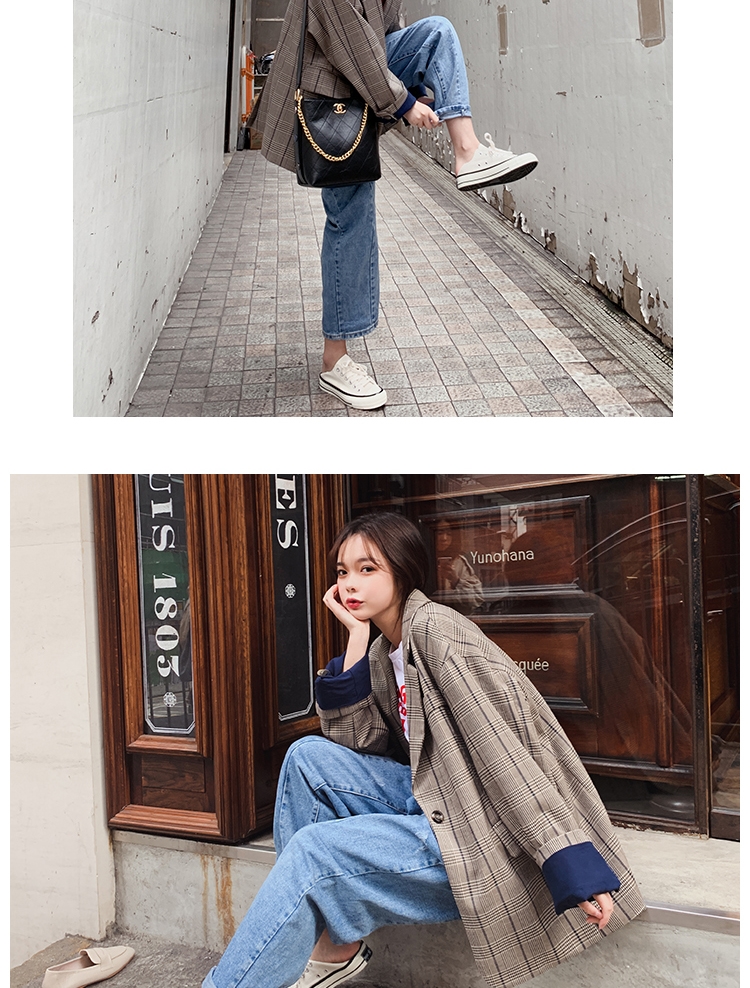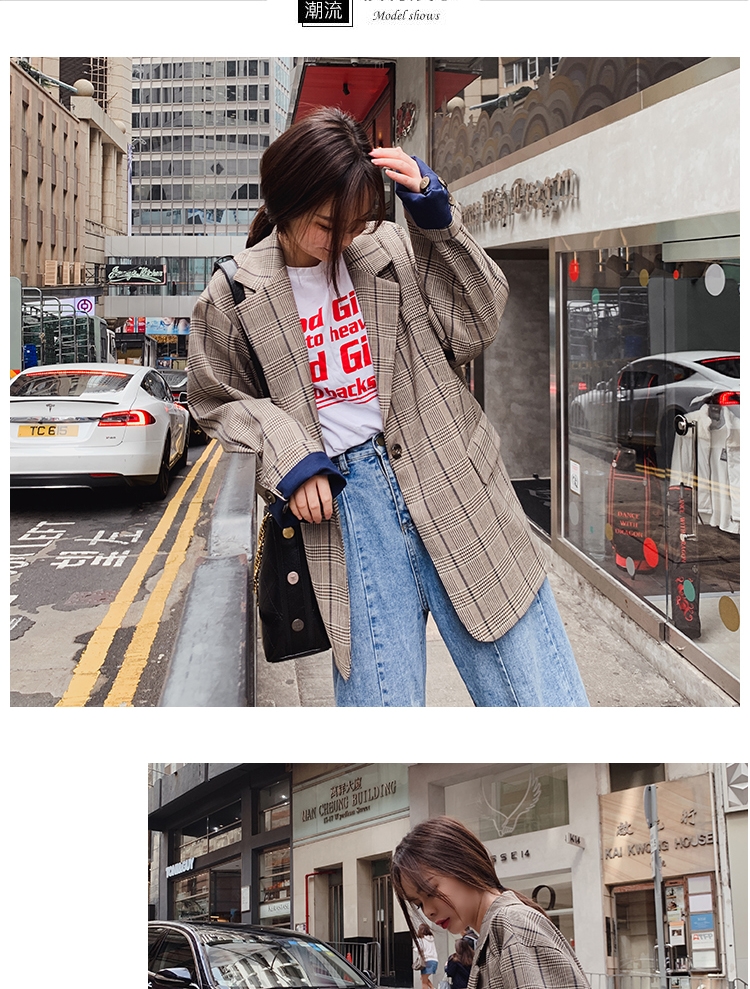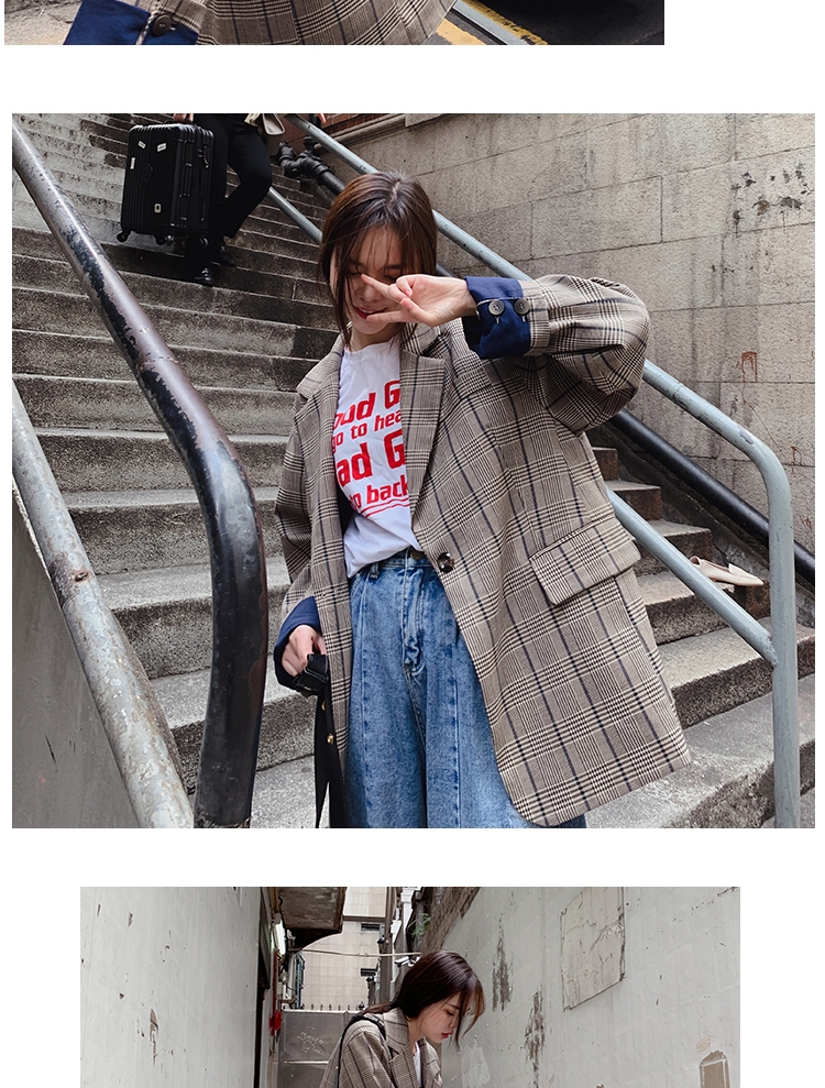 商品名稱(chēng):chic小西裝外套女新款女裝韓版寬松春裝網(wǎng)紅學(xué)生bf格子西服潮
