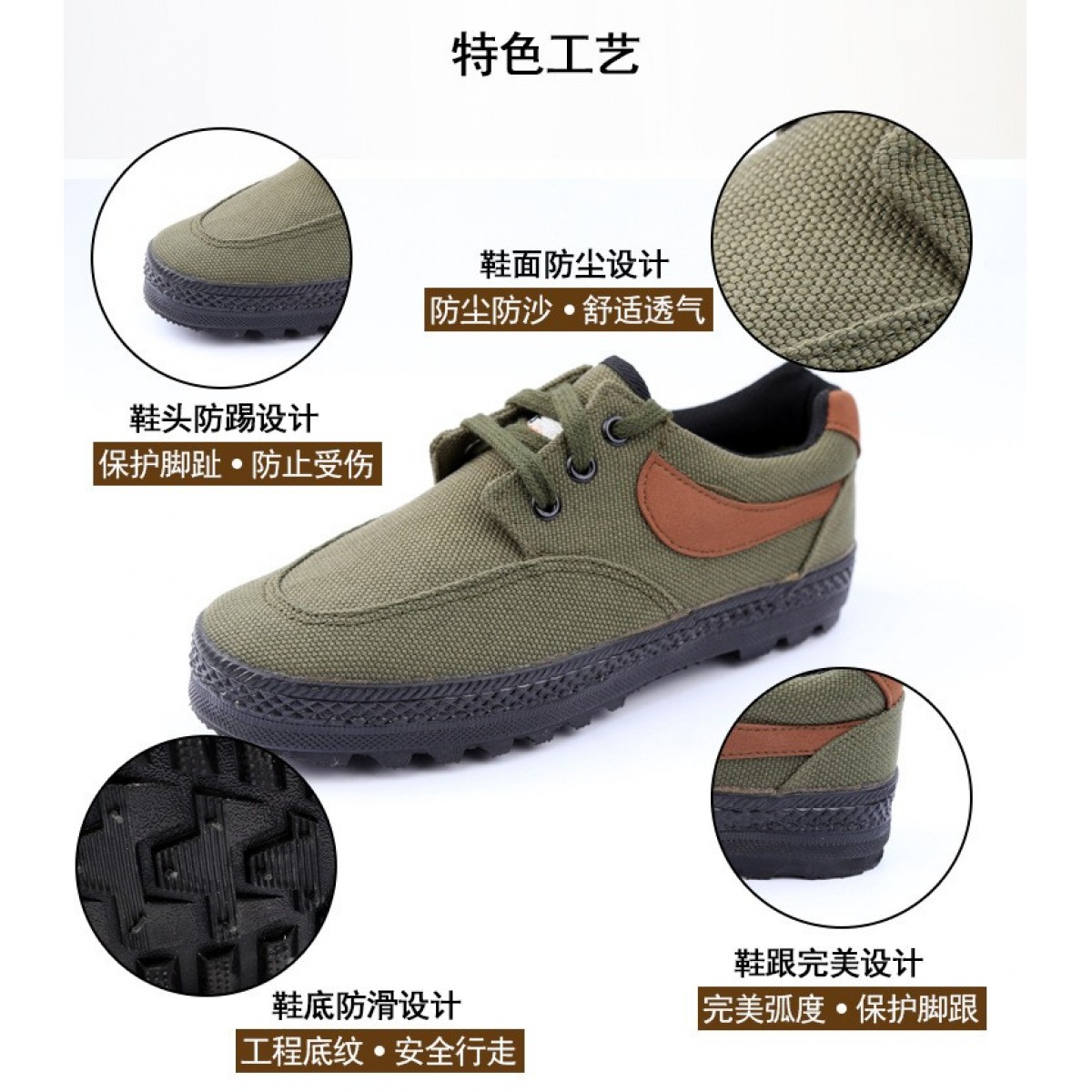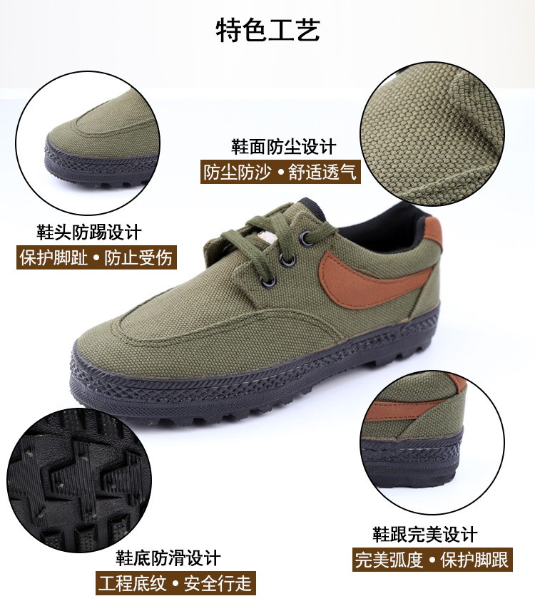 商品名稱:解放鞋 休閑 勞保作訓鞋男女防滑耐磨登山鞋軍綠色帆布膠鞋軍迷鞋
