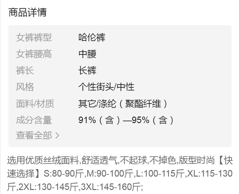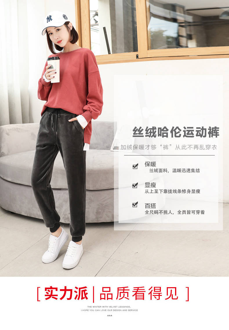 商品名稱:加厚絲絨運動褲女冬季保暖BF風(fēng)哈倫褲休閑褲衛(wèi)褲長褲