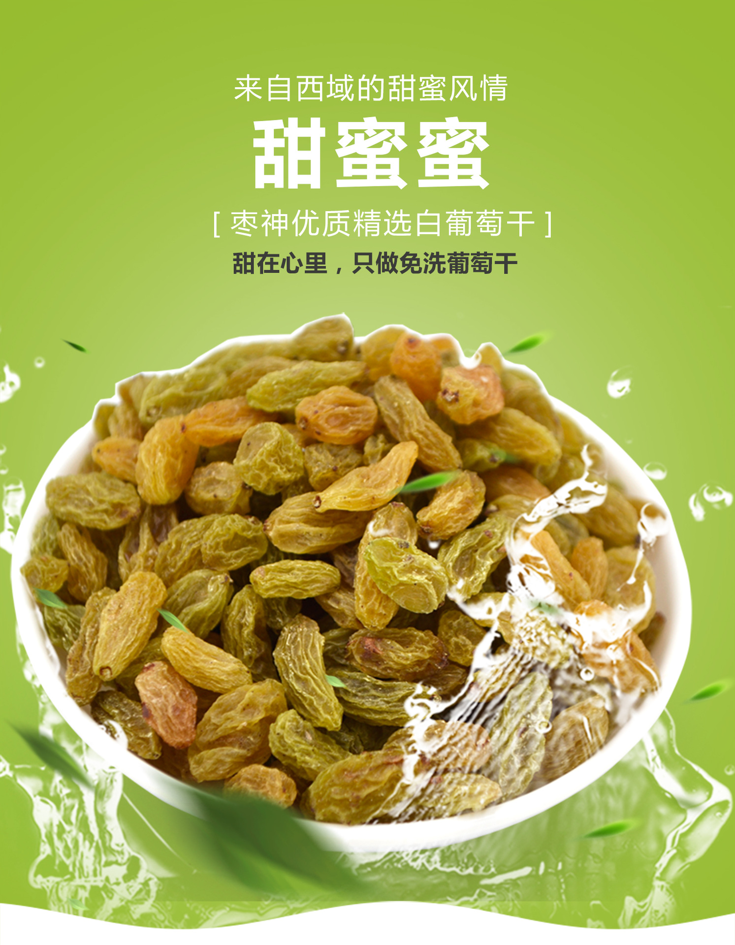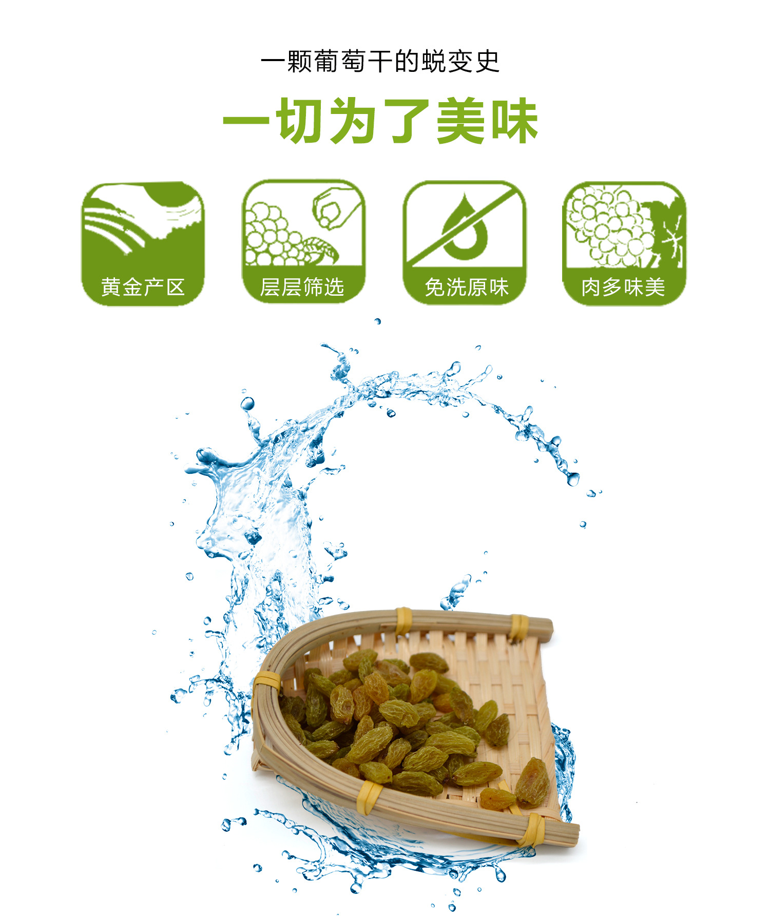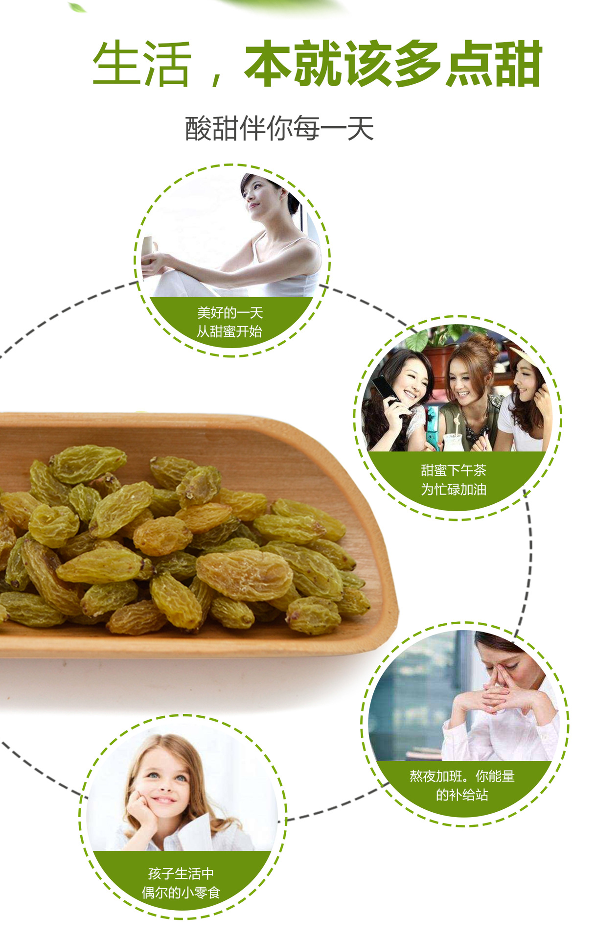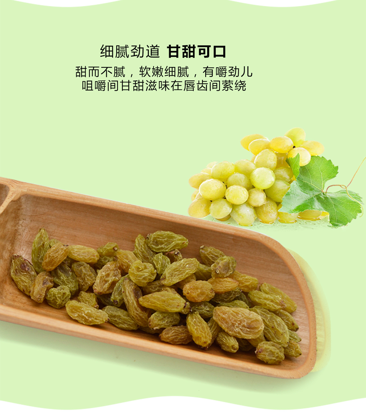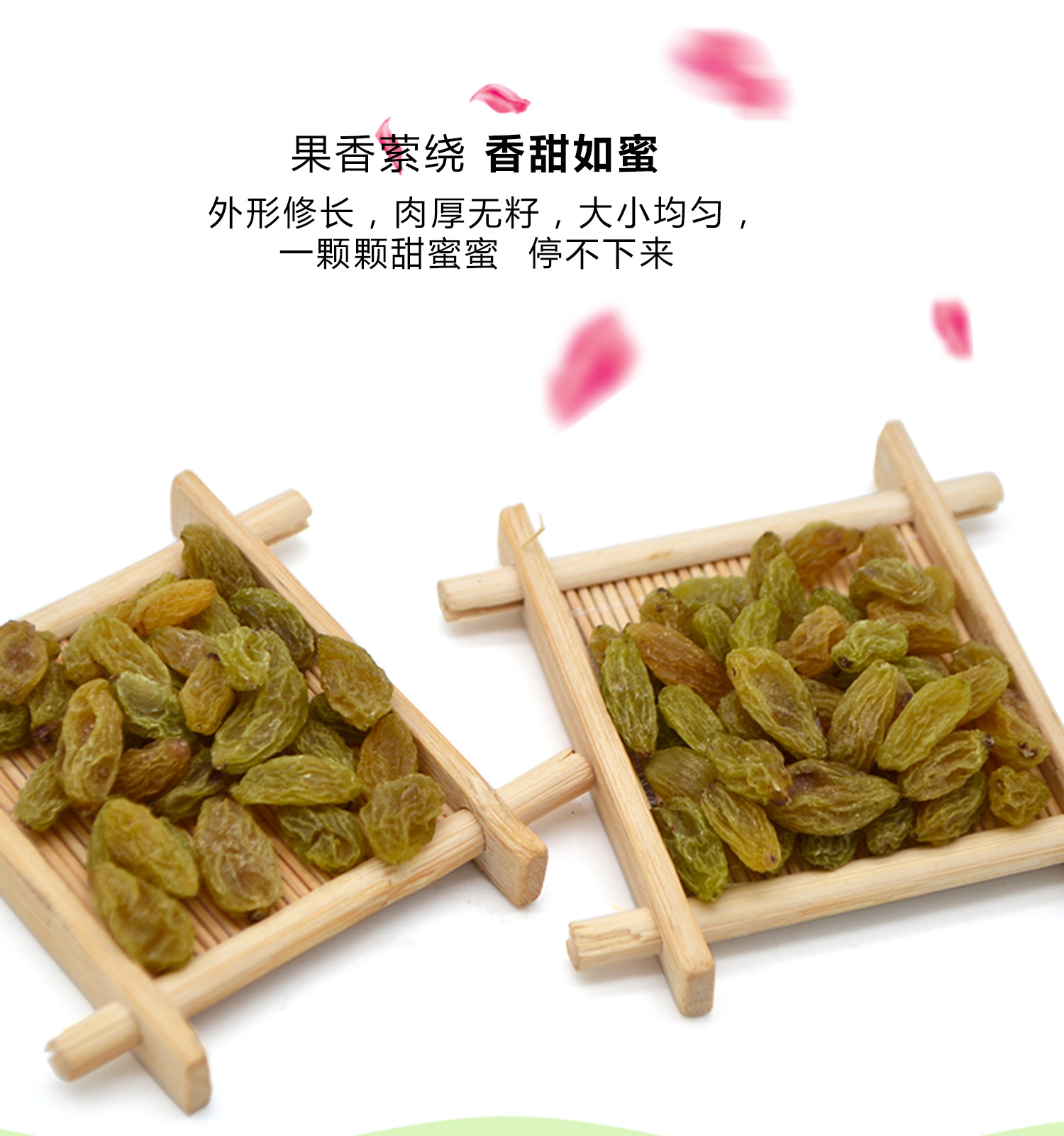 商品名稱:新疆吐魯番葡萄干綠香妃提子干500g水果干休閑零食無核白葡萄干