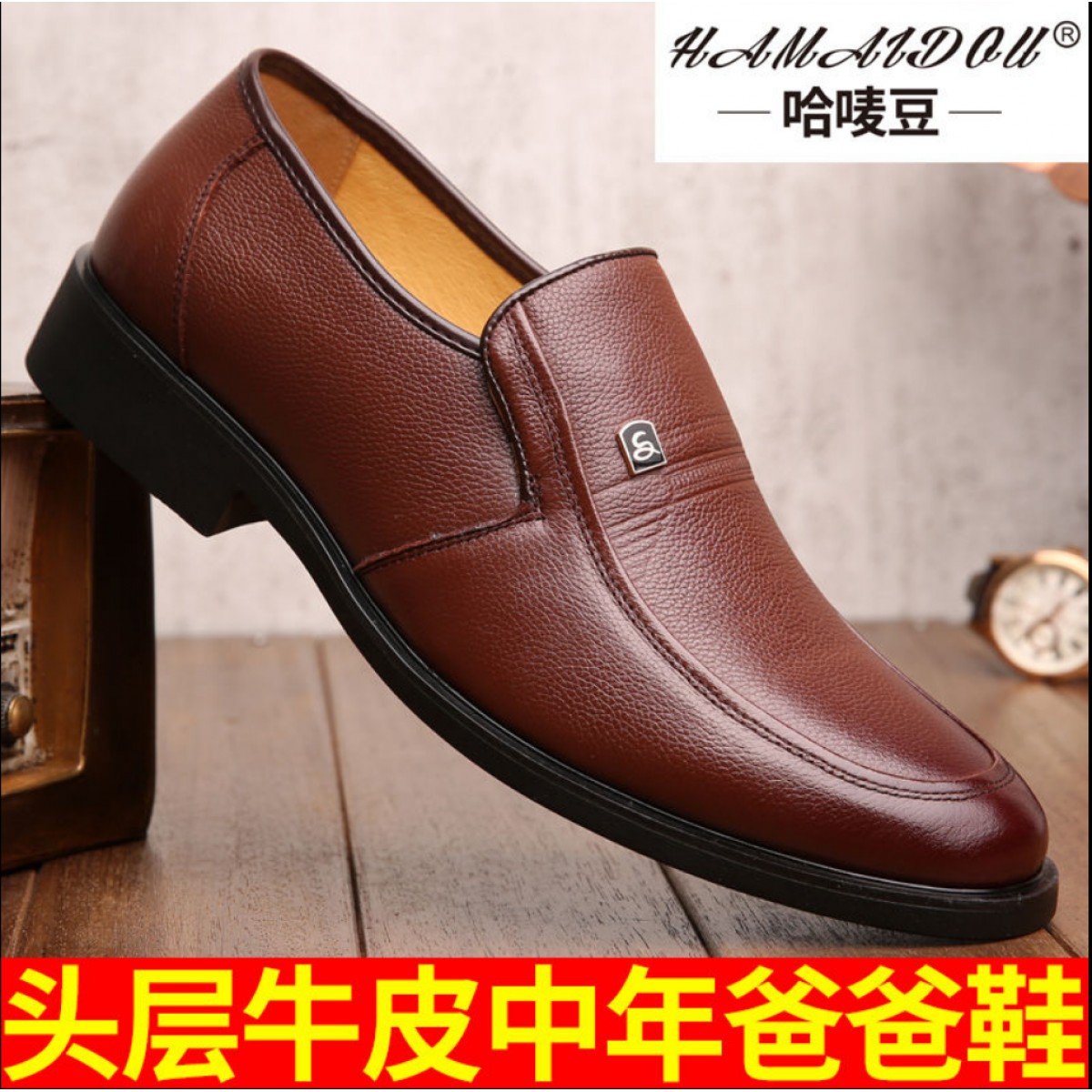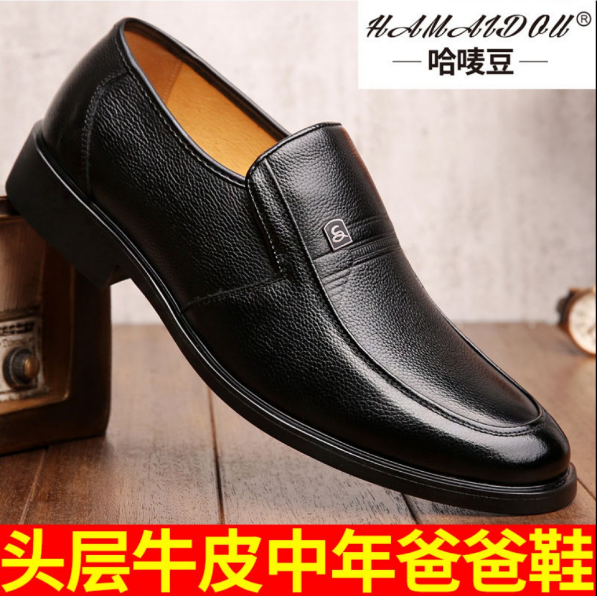 商品名稱:真頭層牛皮男士皮鞋男中年人商務(wù)男鞋防滑加絨爸爸鞋透氣套腳軟底