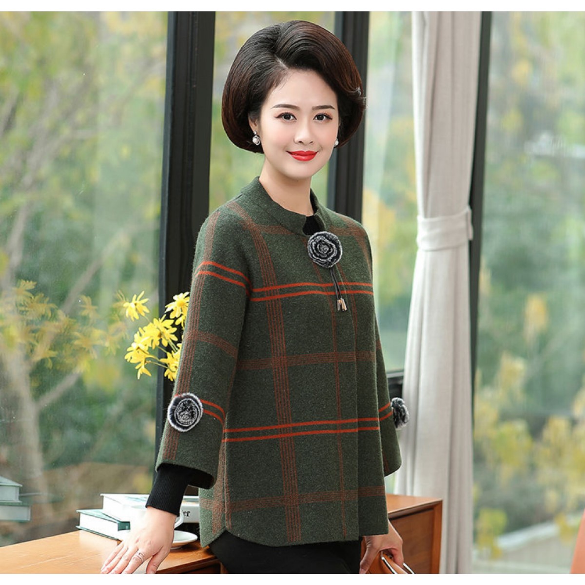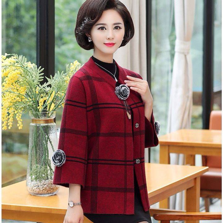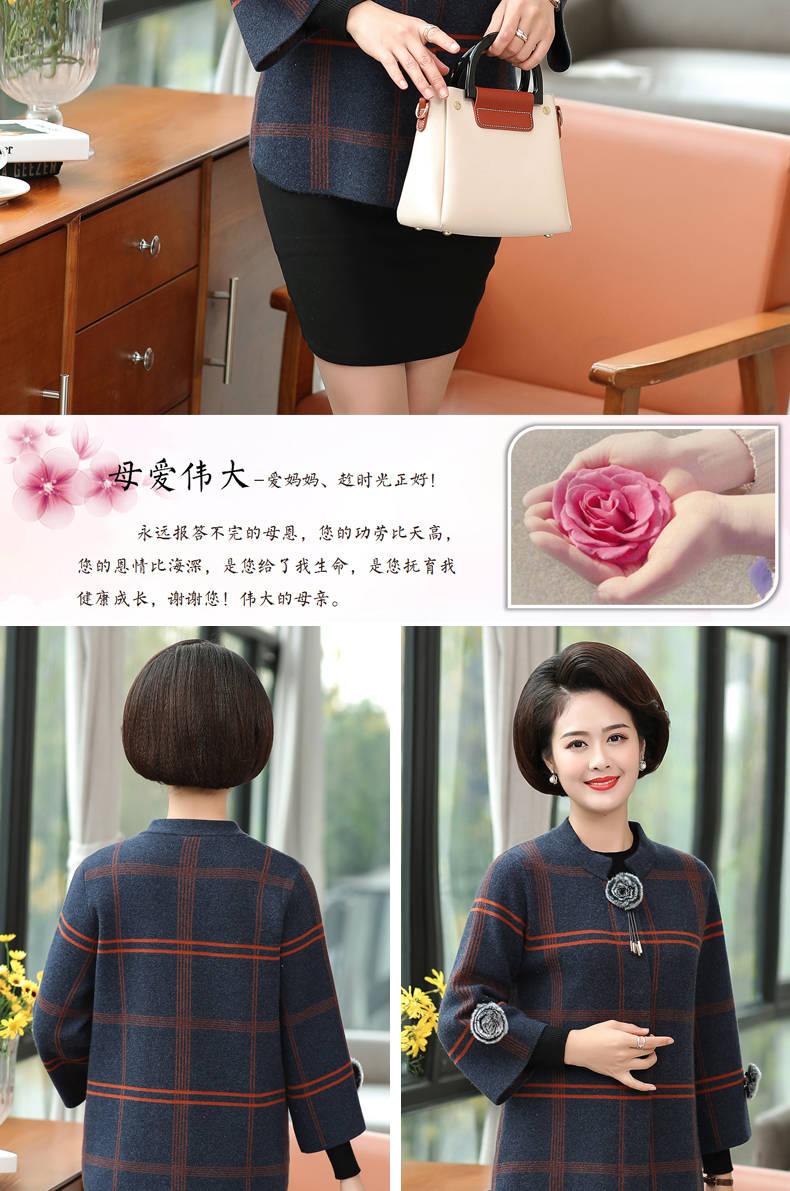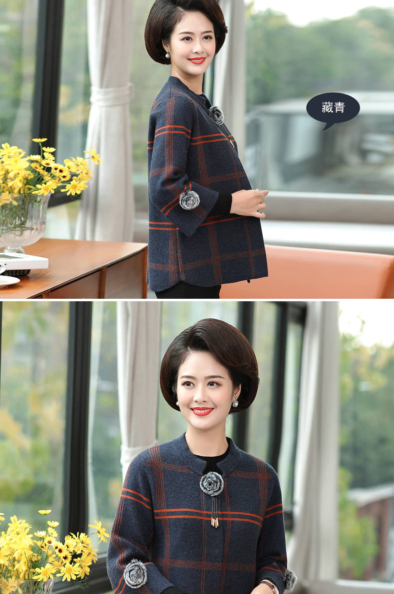 商品名稱:2019新款短款格子毛衣媽媽裝秋裝針織外套中老年女裝洋氣薄款開衫