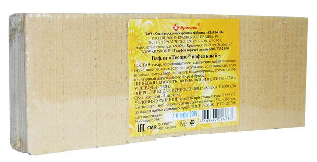 Состав: сахар, жир кондитерский, мука пшеничная (обжаренная), вафли листовые (мука пшеничная, масло растительное, соль пищевая, разрыхлитель-гидрокарбонат натрия, эмульгатор-лецитин соевый), какао-порошок, эмульгатор-лецитин соевый, ароматизатор пищевой "Крем-брелю".
