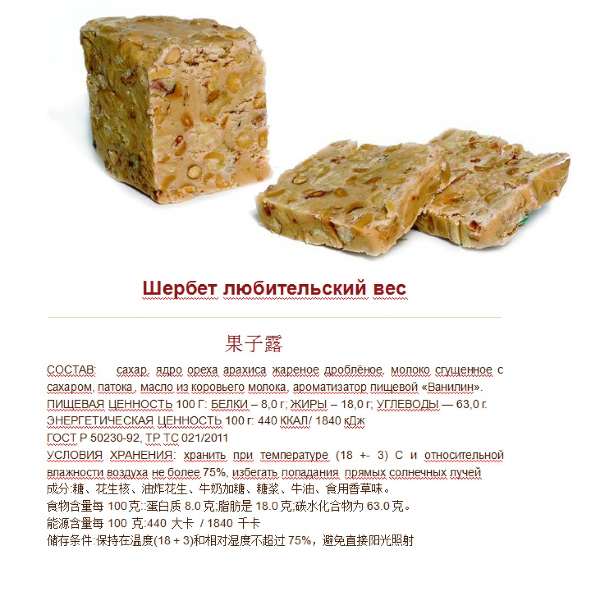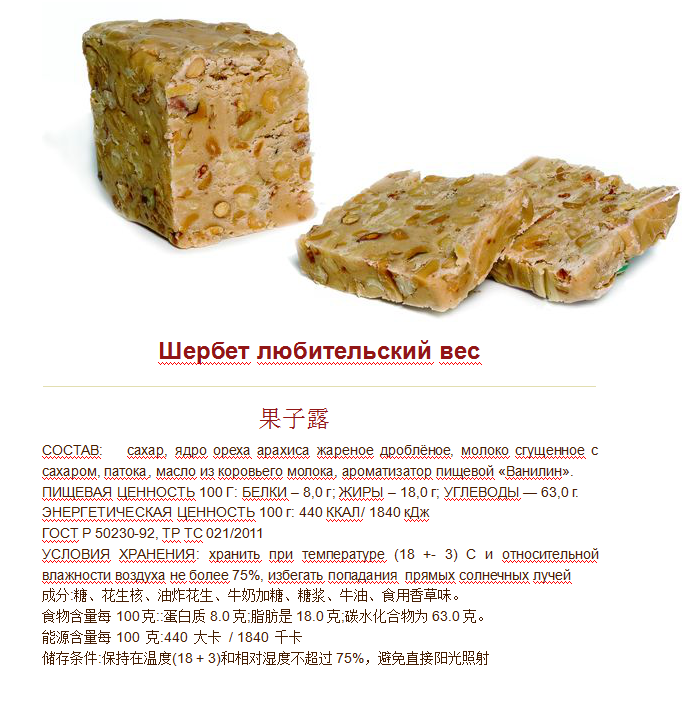 成分:糖、花生核、油炸花生、牛奶加糖、糖漿、牛油、食用香草味。