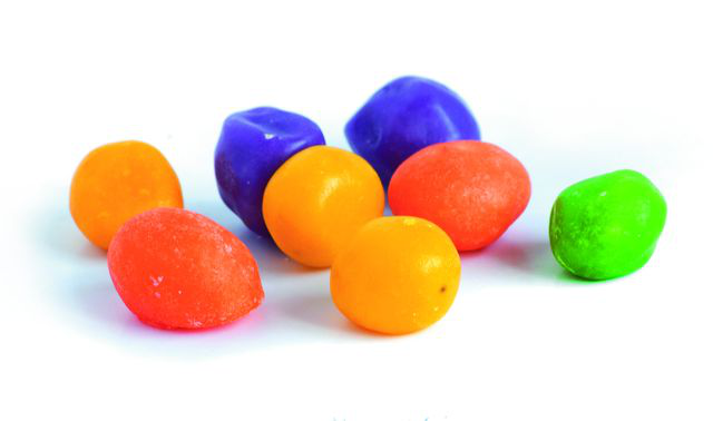 Состав: сахар, изюм, патока, регулятор кислотности — кислота лимонная, ароматизатор пищевой ?Ванильный?, агент антислеживающий — тальк, глазирователь — парафин, масло растительное, красители натуральные пищевые: Е100, Е160b, Е141, Е162, Е120, Е132.