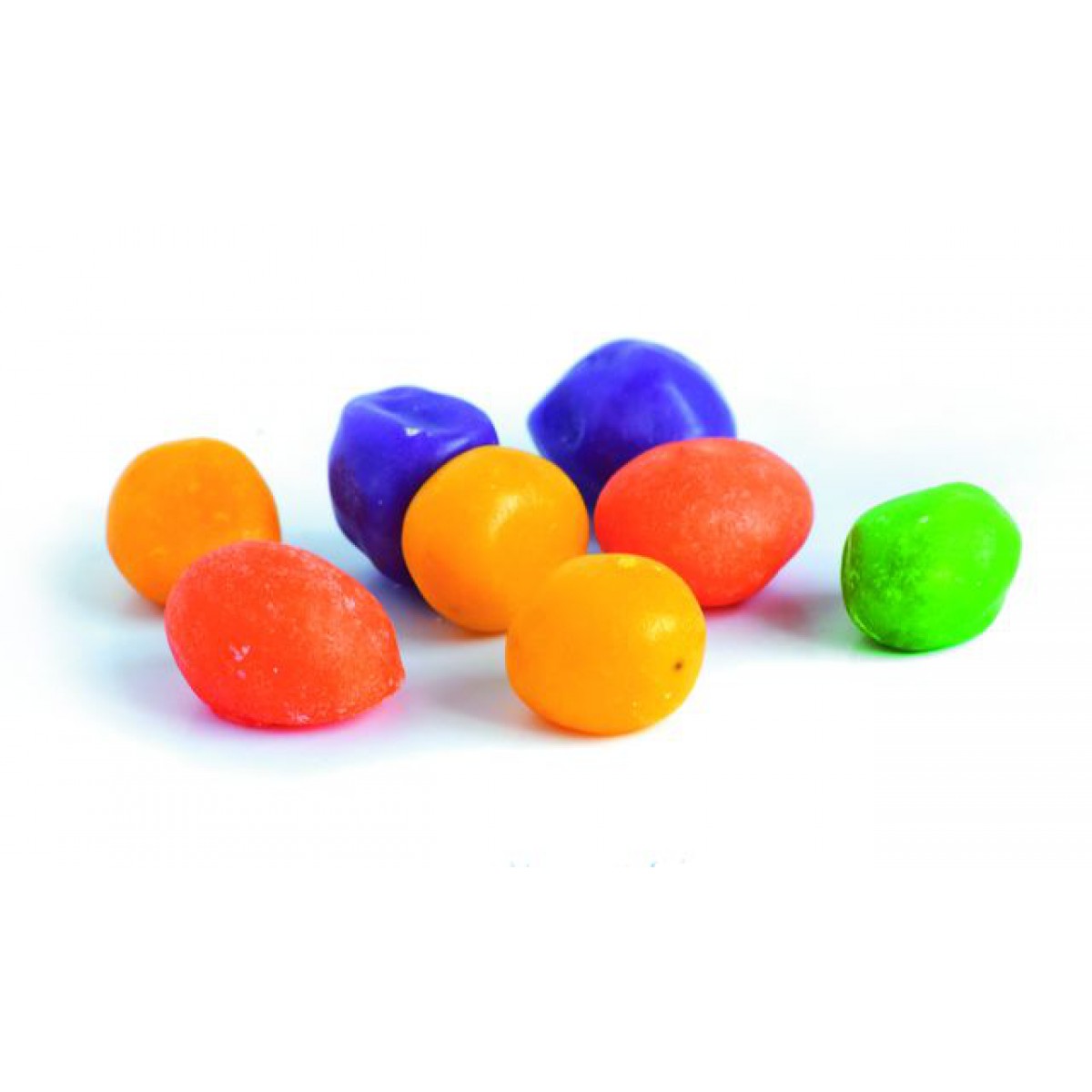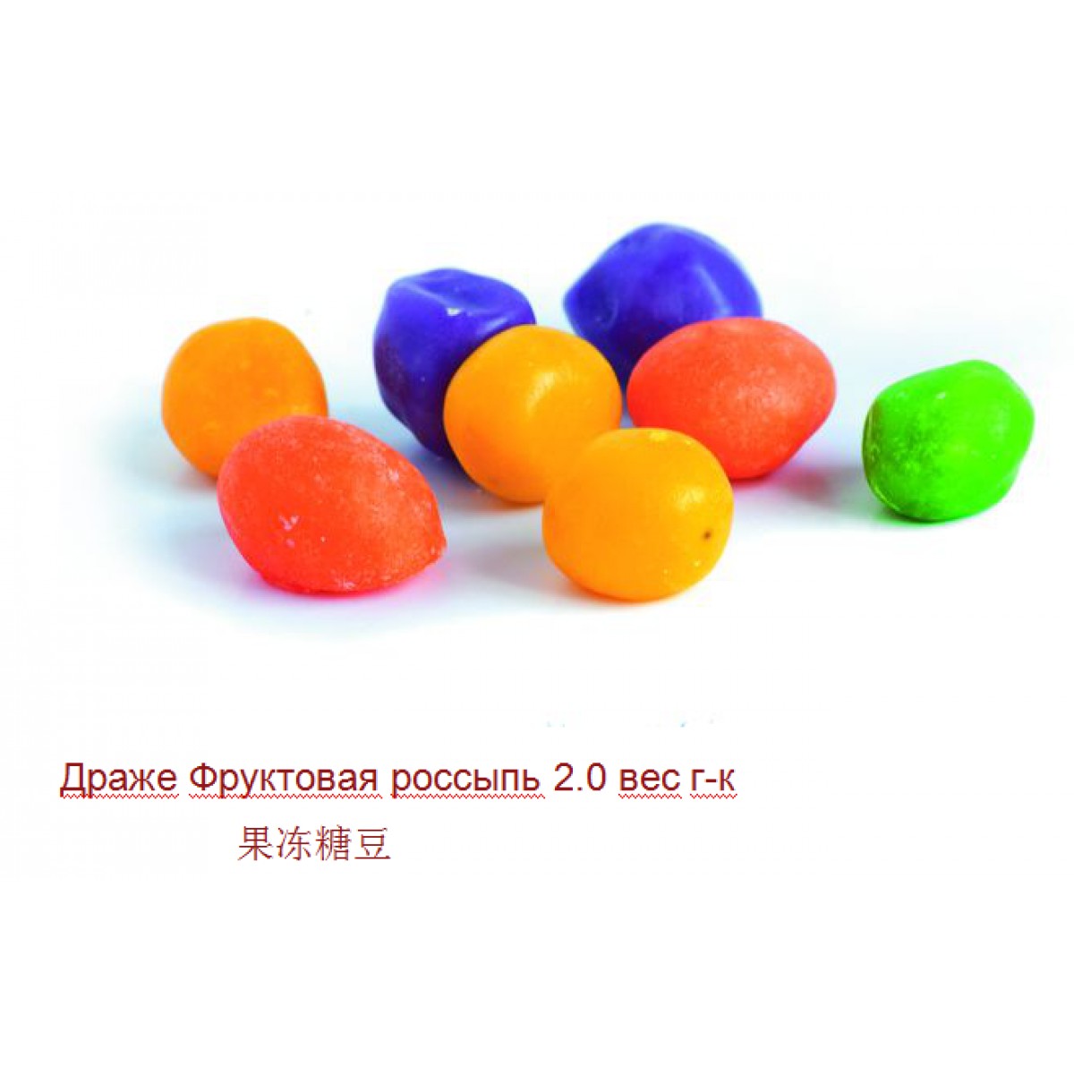 Состав: сахар, изюм, патока, регулятор кислотности — кислота лимонная, ароматизатор пищевой ?Ванильный?, агент антислеживающий — тальк, глазирователь — парафин, масло растительное, красители пищевые: "Михромовый красный", "Лютеин", "Зелёное яблоко", "Аннато".