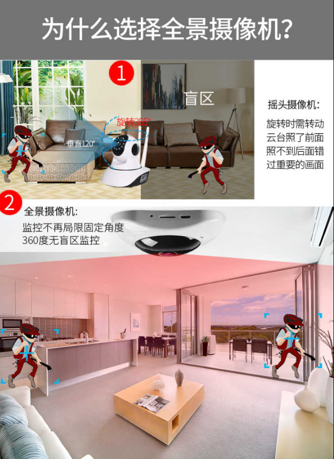 360度全景監(jiān)控?cái)z像頭高清手機(jī)遠(yuǎn)程家用監(jiān)控器無線wifi智能一體機(jī)
