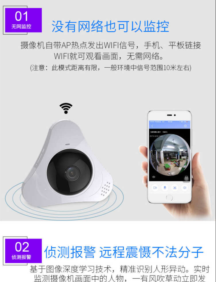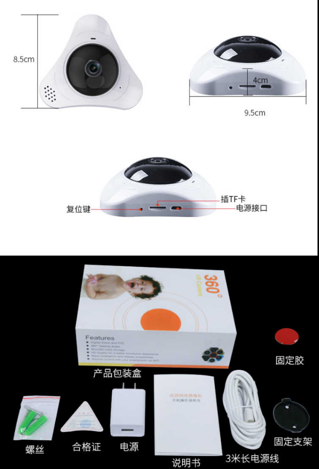 商品名稱:360度全景監(jiān)控?cái)z像頭高清手機(jī)遠(yuǎn)程家用監(jiān)控器無線wifi智能一體機(jī)