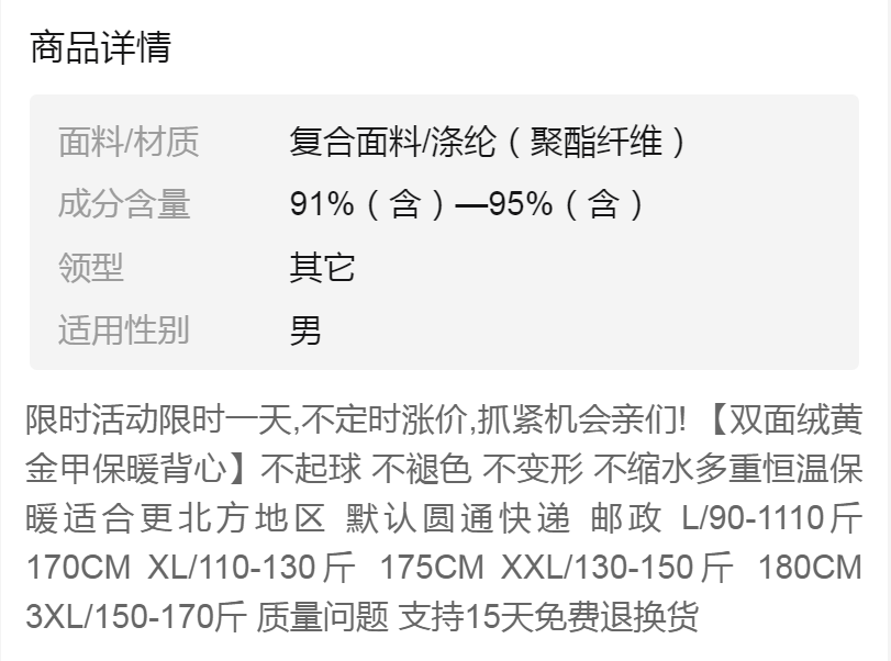 商品名稱:男士【女士】加厚保暖背心冬季雙面絨超柔加肥加大修身