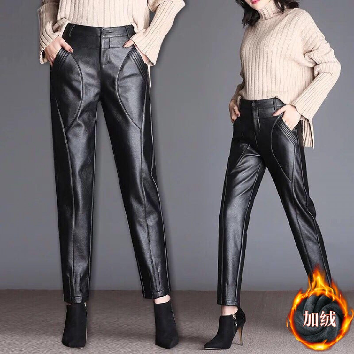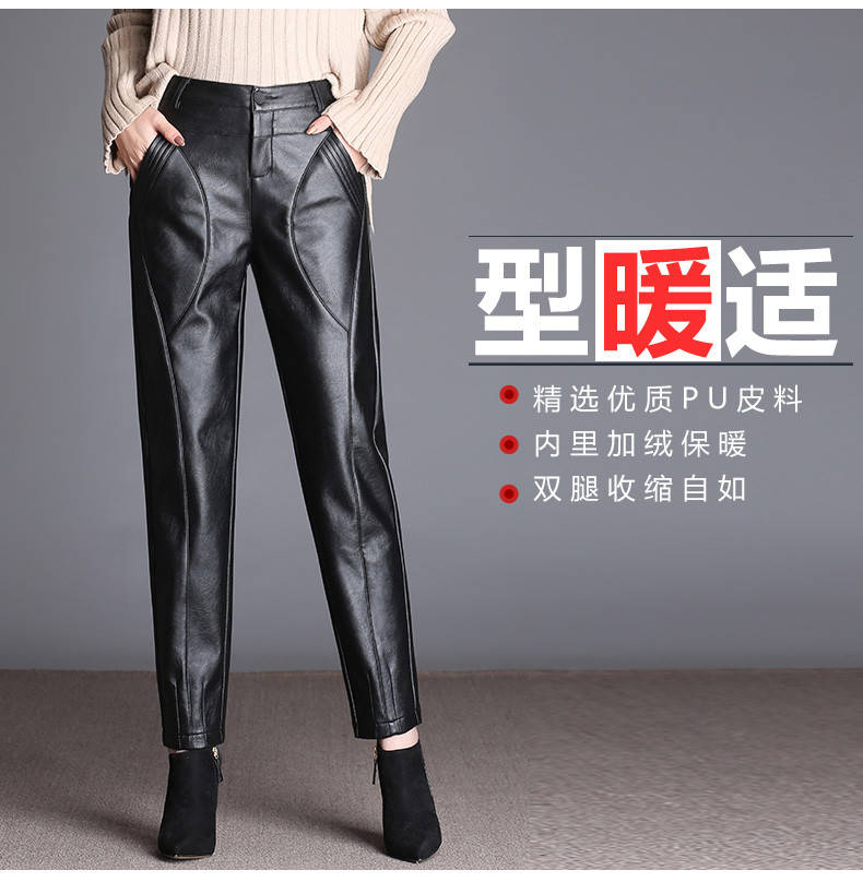 商品名稱:皮褲女寬松外穿高腰哈倫褲秋冬女士皮褲子女加絨長(zhǎng)褲小腳褲休閑褲