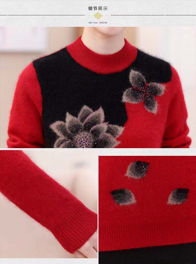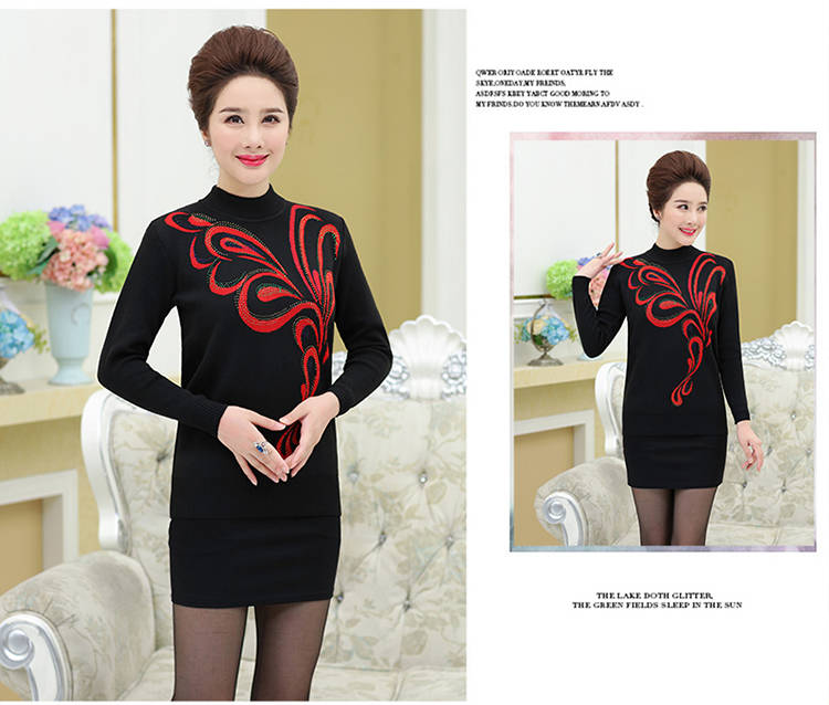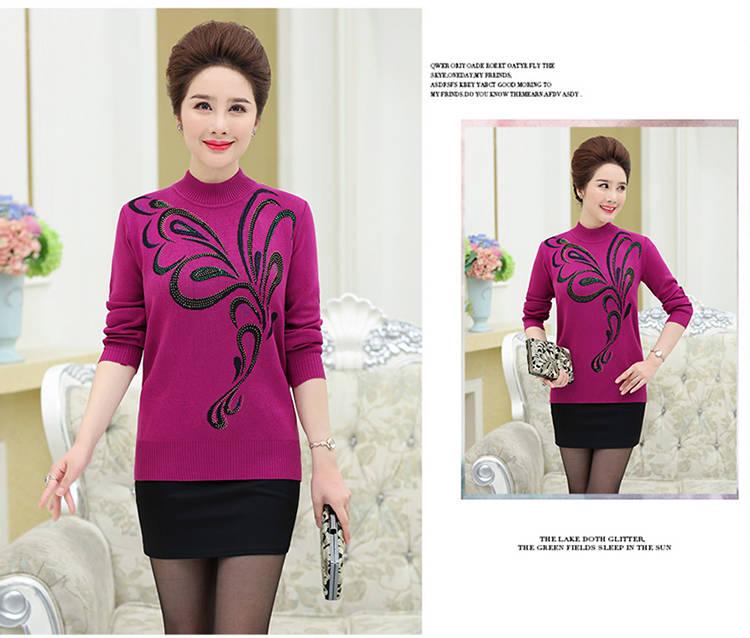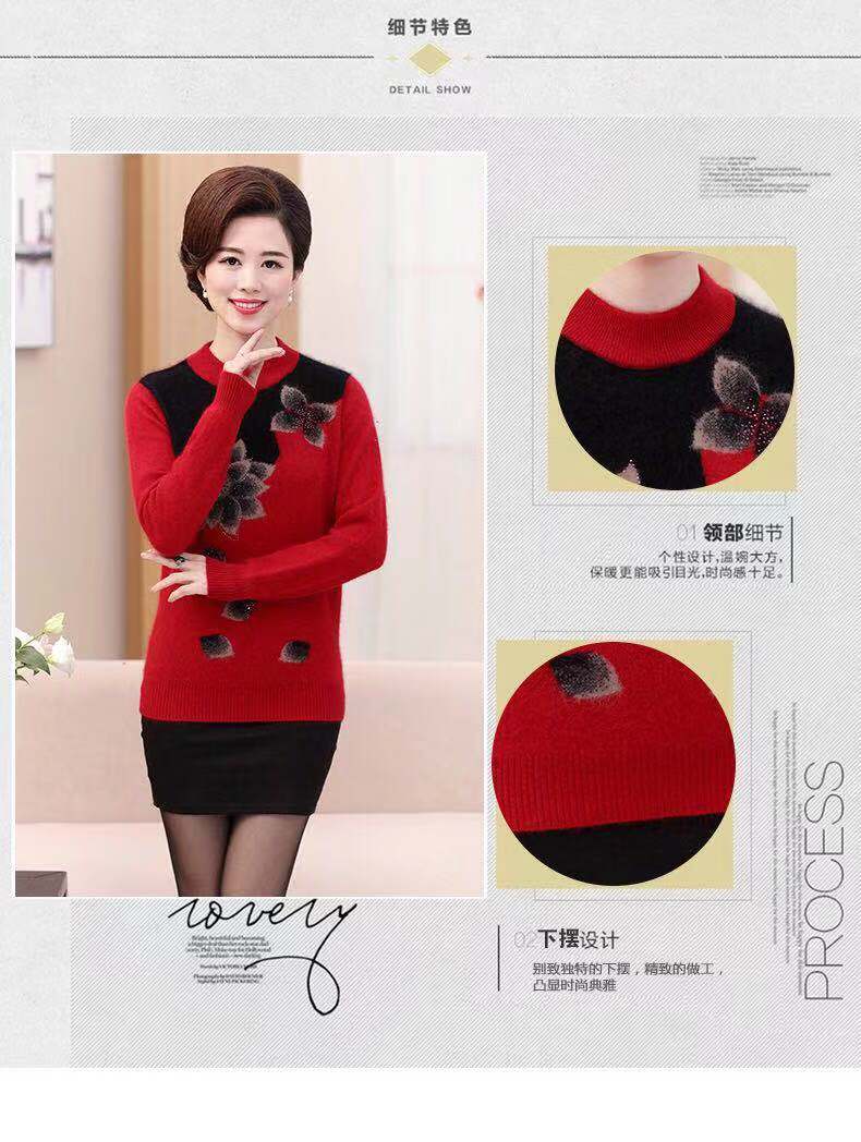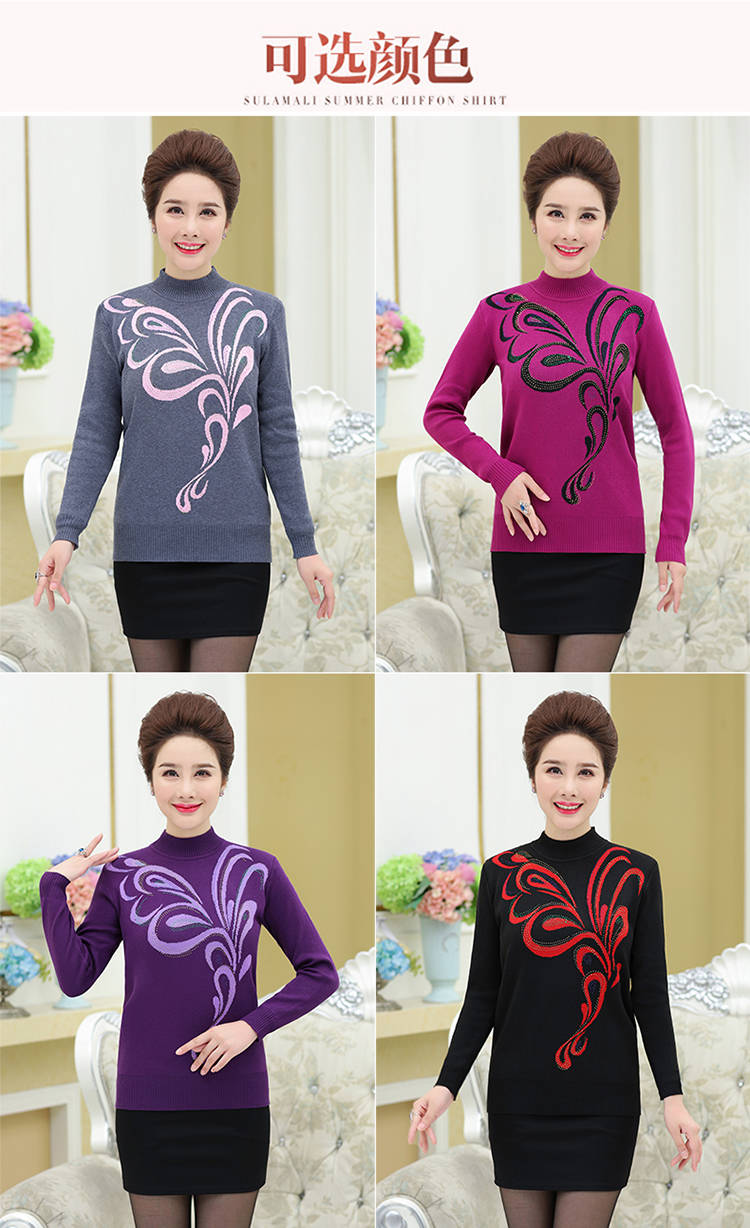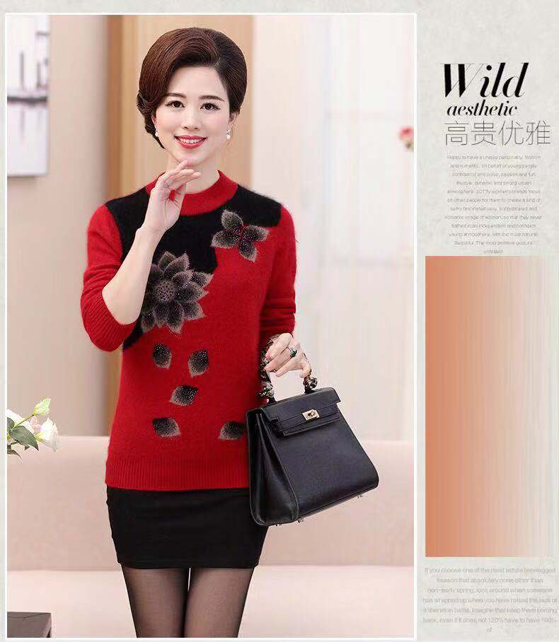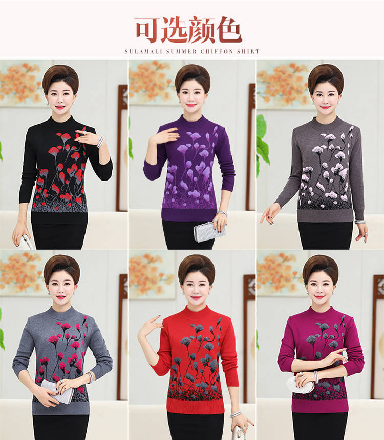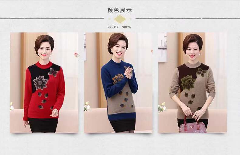 商品名稱:不加絨中老年女裝毛衣針織衫秋冬媽媽裝加絨加厚打底衫毛衣