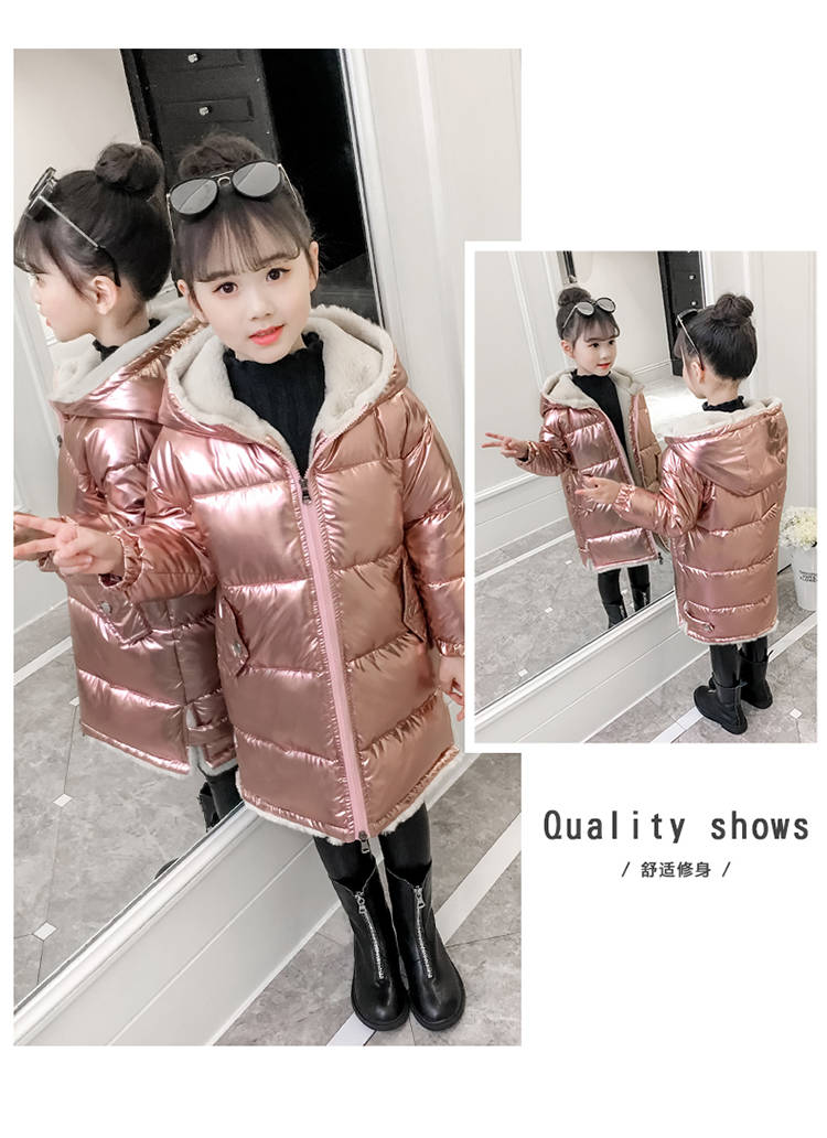 商品名稱:童裝女童冬裝棉衣外套兒童大童秋冬季加絨加厚中長款棉襖洋氣棉服