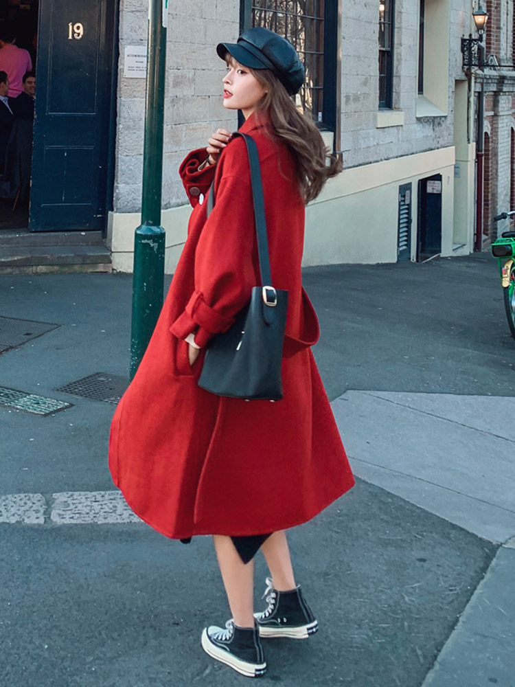 毛呢大衣女中長(zhǎng)款過(guò)膝秋冬季新款氣質(zhì)waitmore百搭呢子外套潮