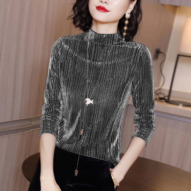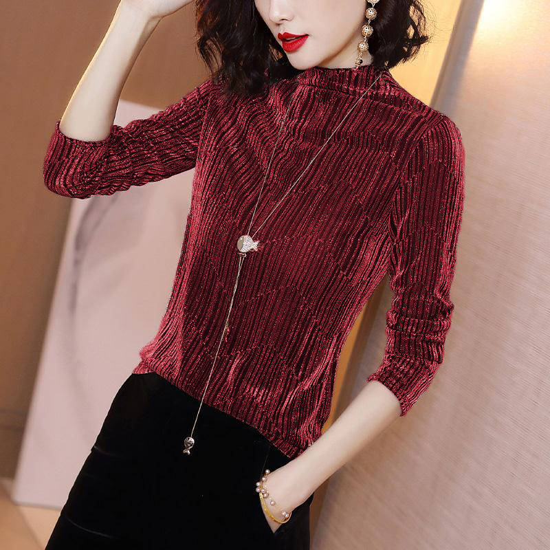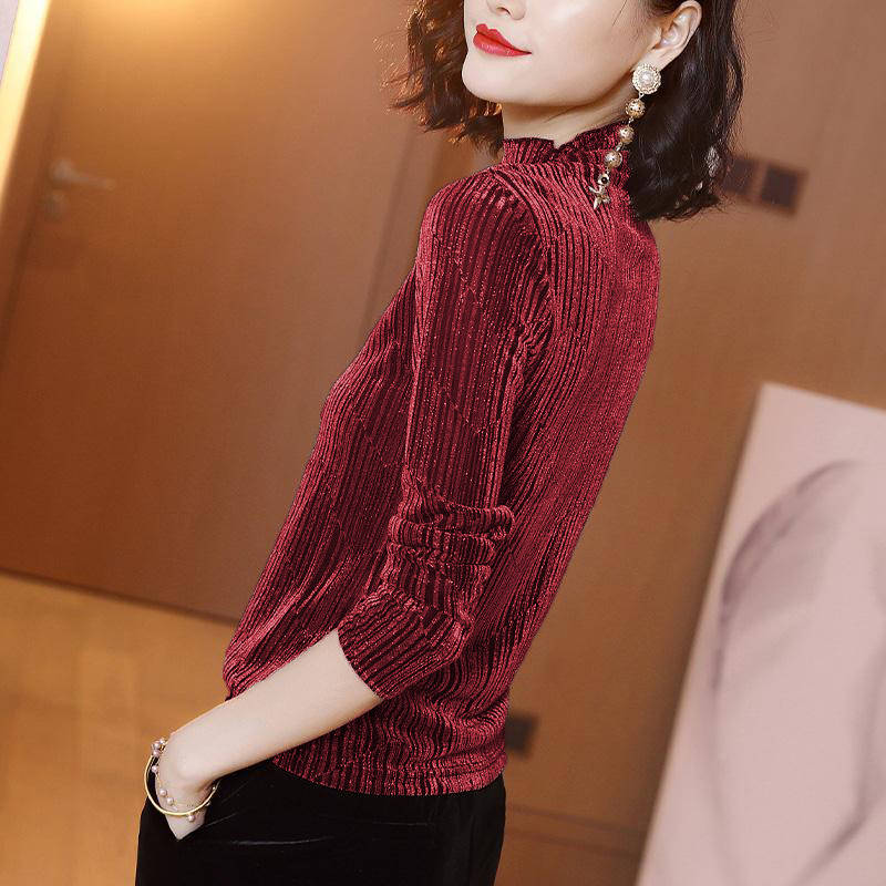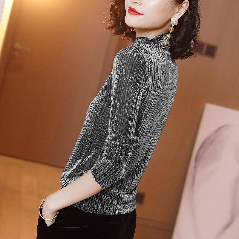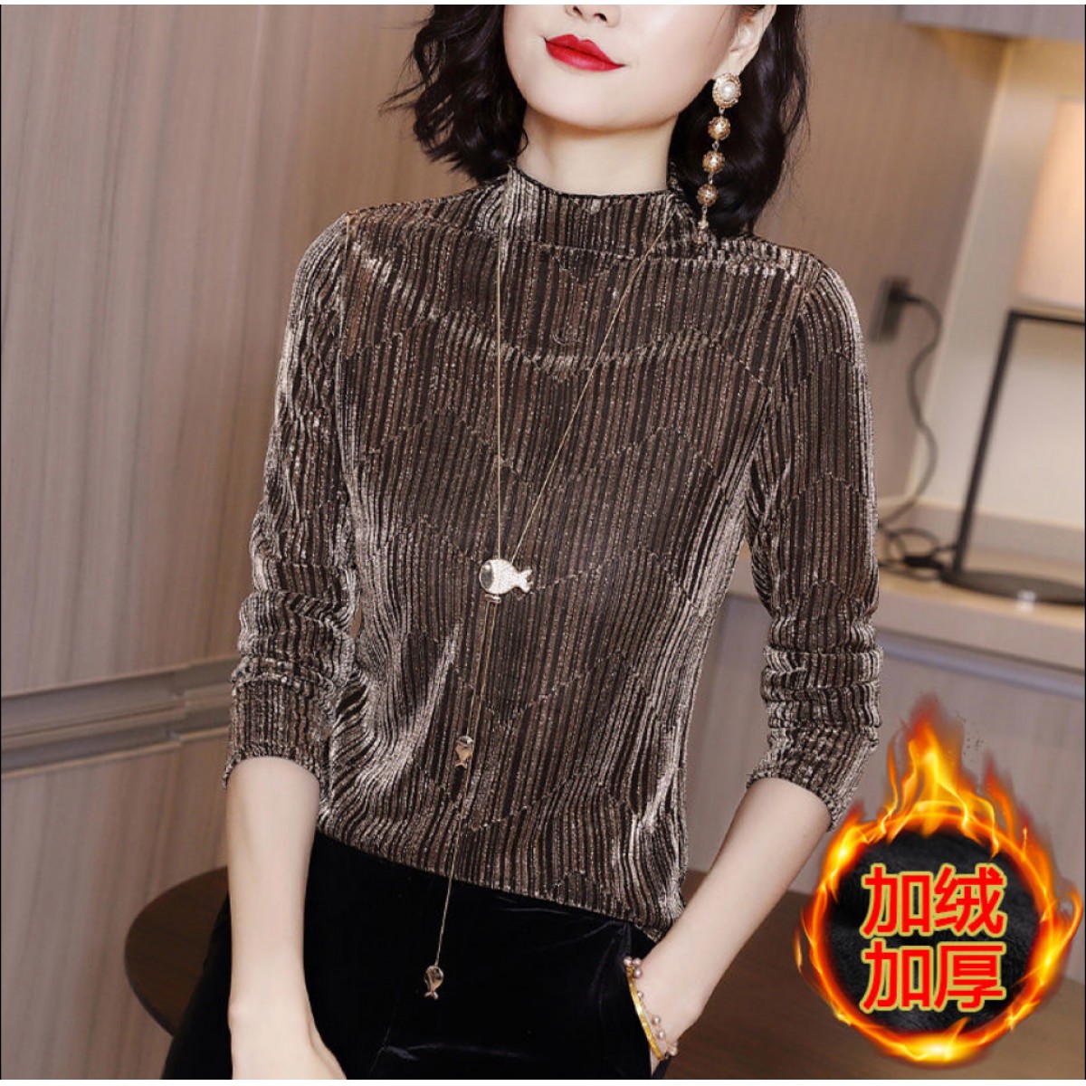 商品名稱:2019秋冬新款加絨/不加絨 T恤女韓版氣質(zhì)立領(lǐng)修身打底衫長(zhǎng)袖上衣