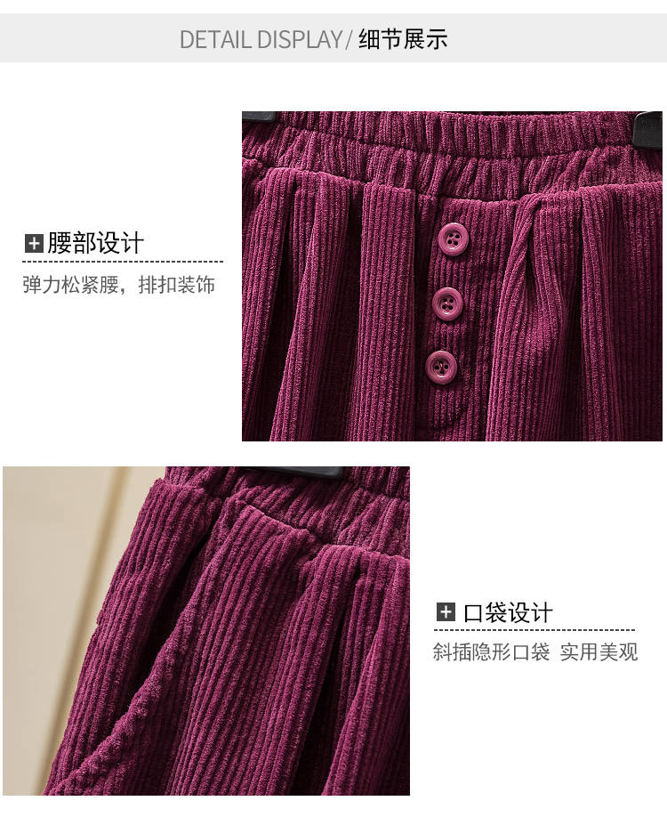 商品名稱:加絨網(wǎng)紅秋冬松緊腰燈芯絨休閑褲女2019新款女百搭寬松哈倫褲