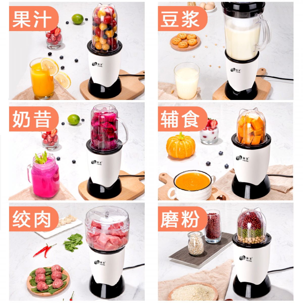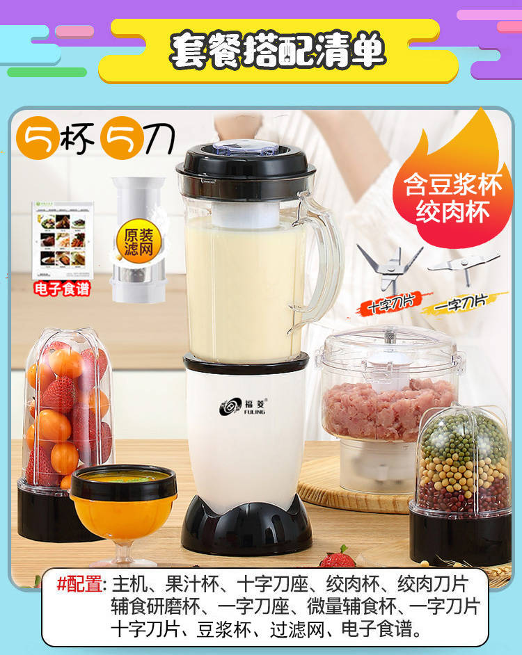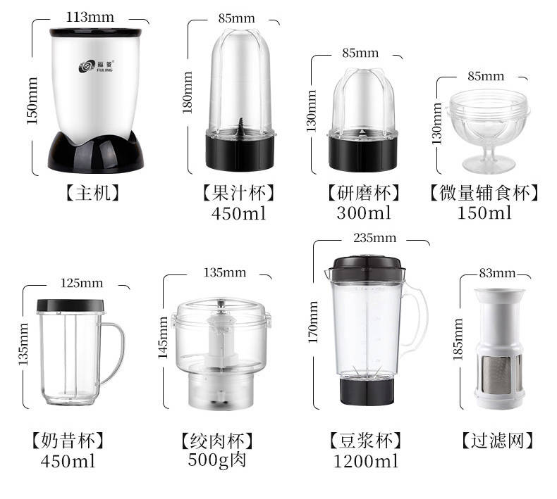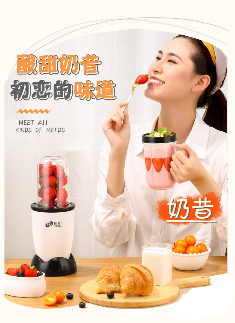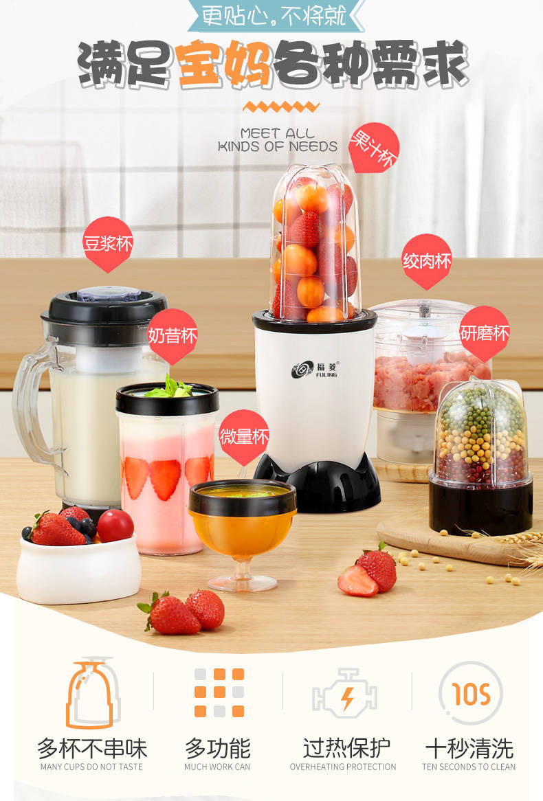 商品名稱:臺灣福菱榨汁機迷你多功能家用小型料理機輔食機嬰兒水果汁機豆?jié){