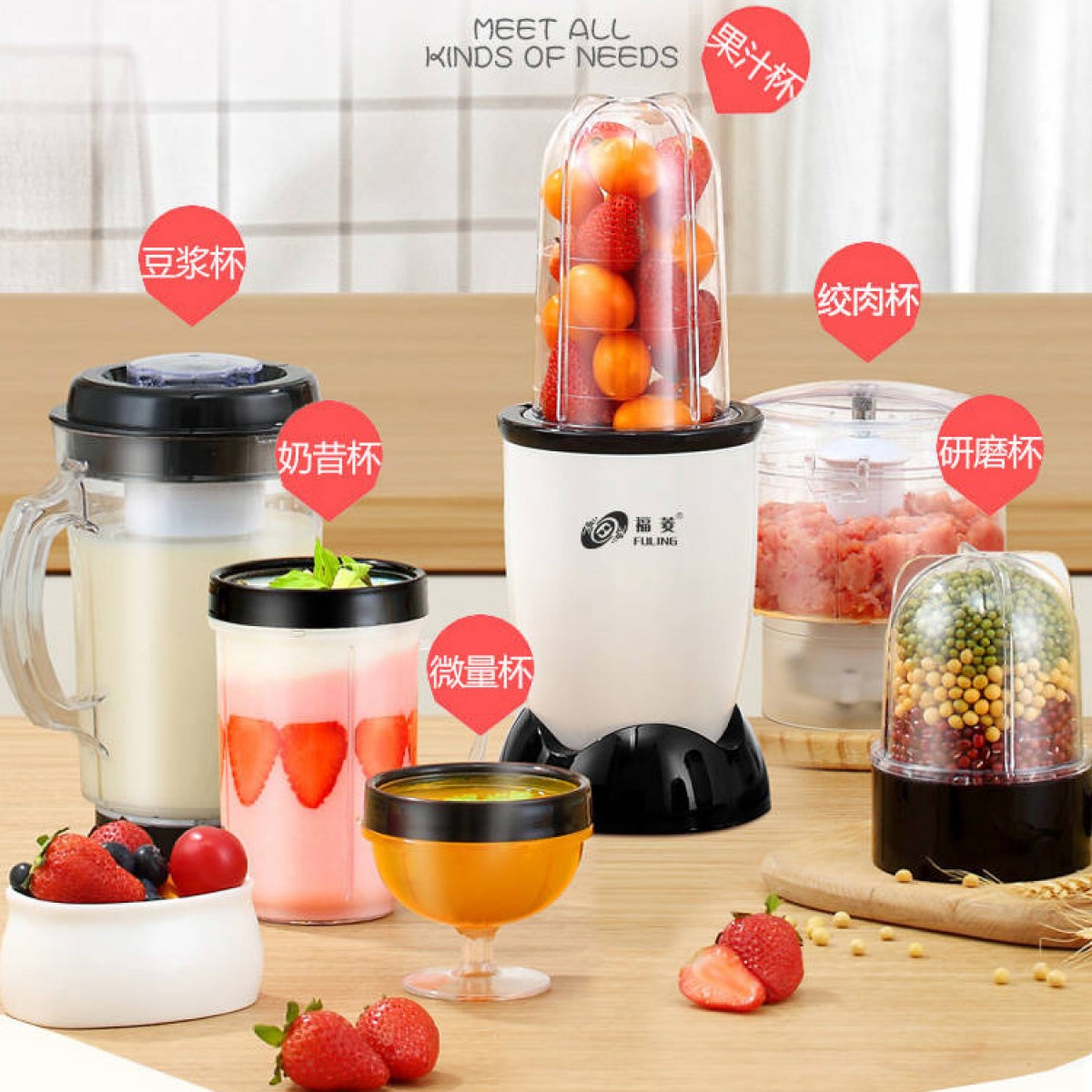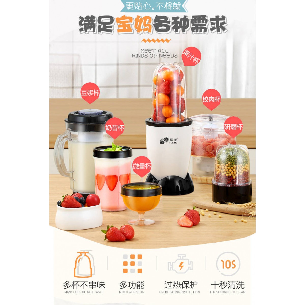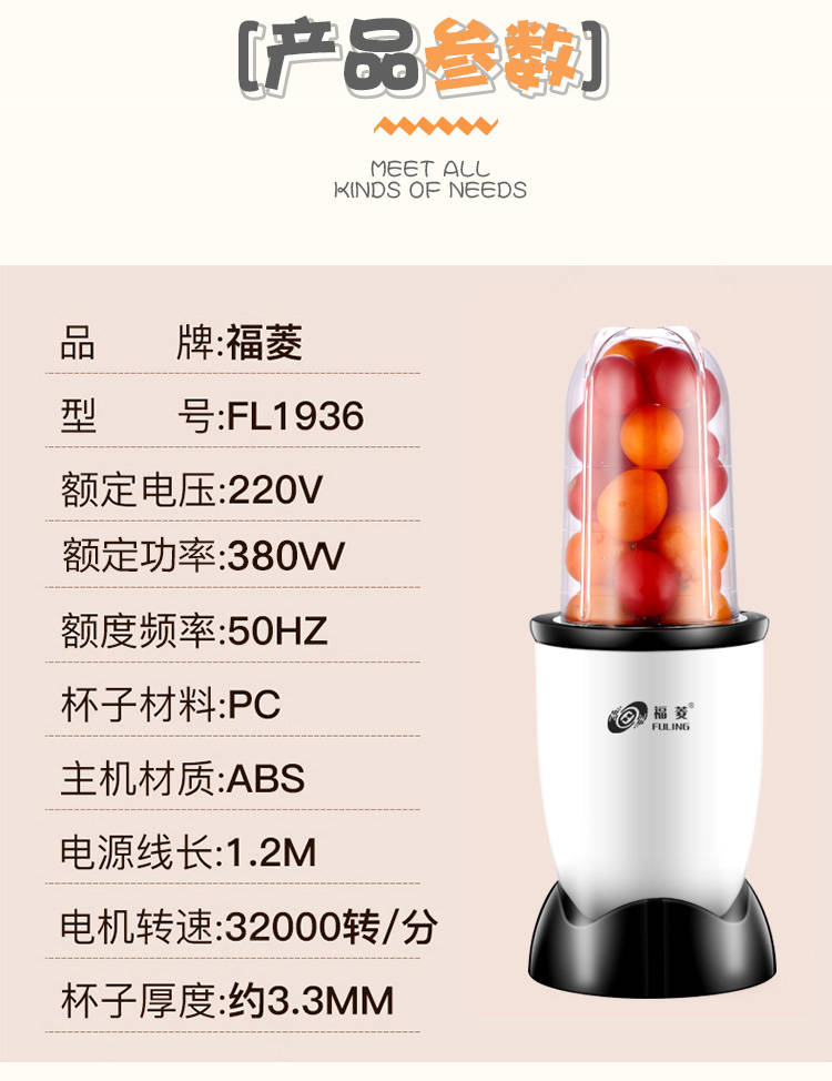 商品名稱:臺灣福菱榨汁機迷你多功能家用小型料理機輔食機嬰兒水果汁機豆?jié){