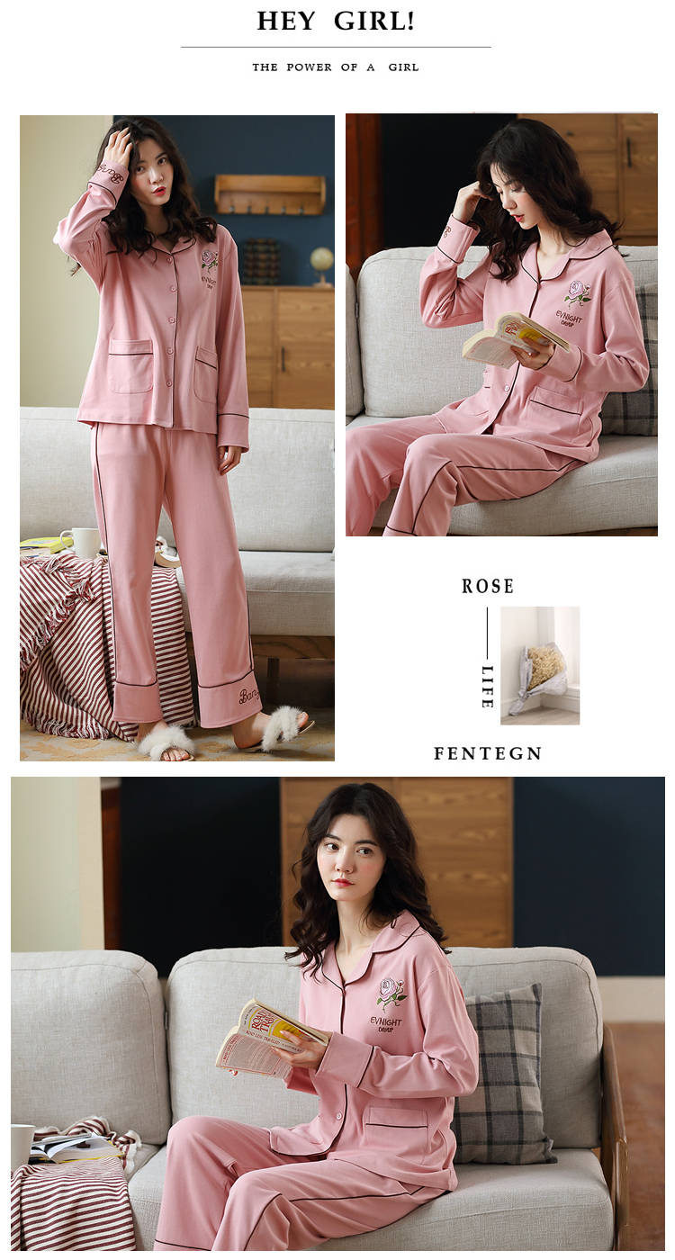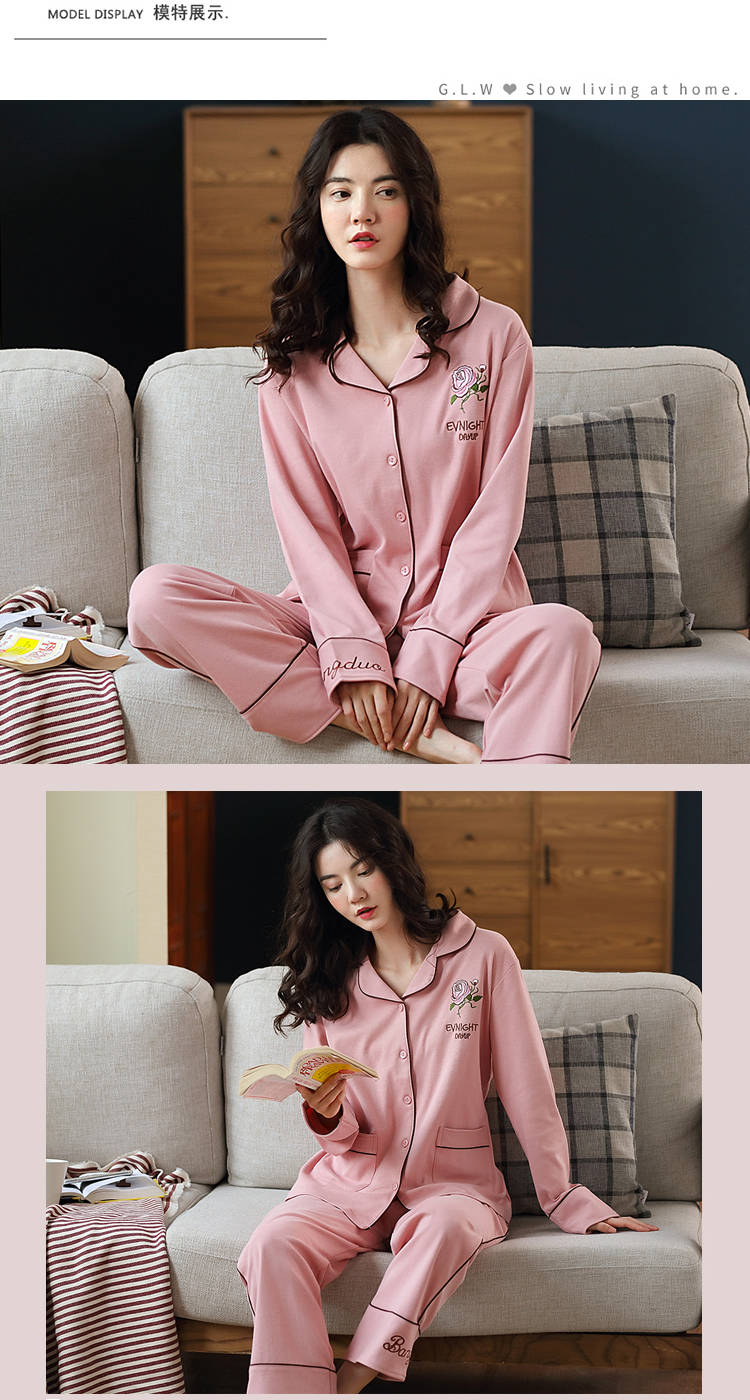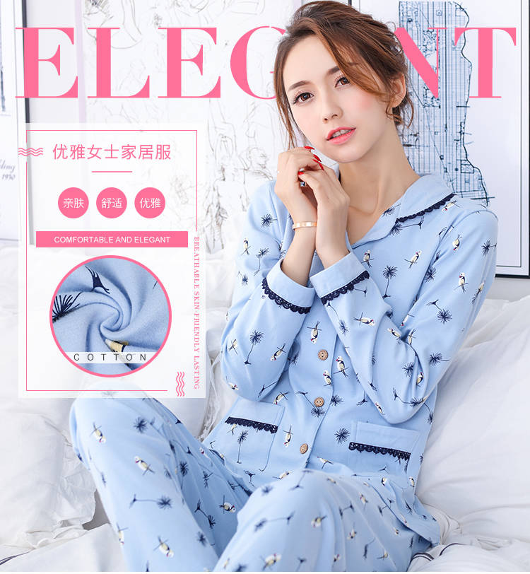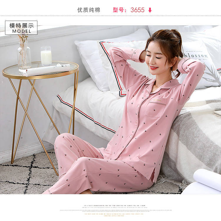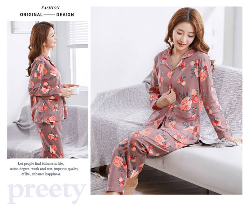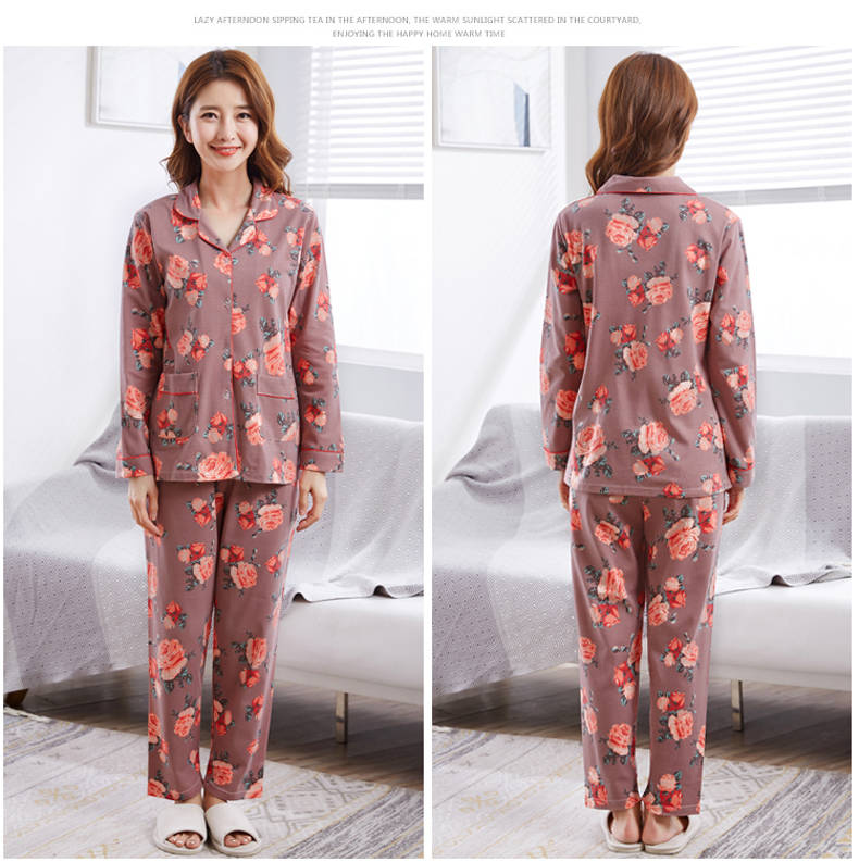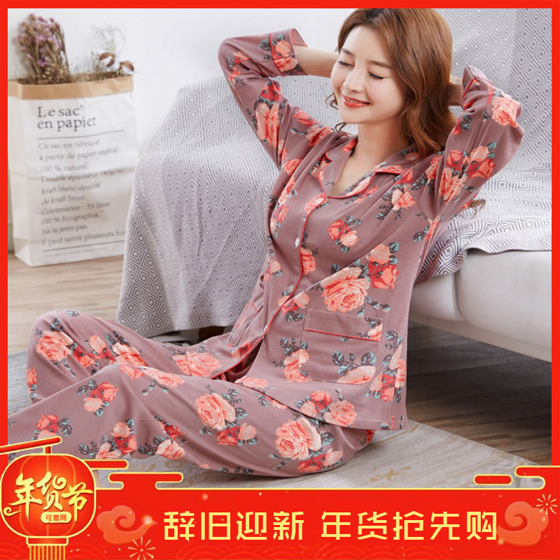 商品名稱:高檔雙面純棉睡衣女士春秋季長(zhǎng)袖冬天大碼中老年媽媽家居服月子服