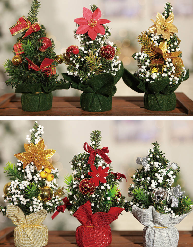 20cm迷你小圣誕樹無紡布金色帶泡沫亮布樹圣誕節(jié)桌面擺件裝飾用品