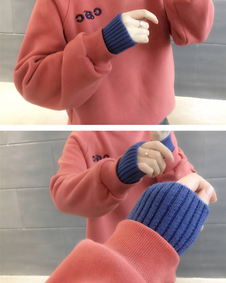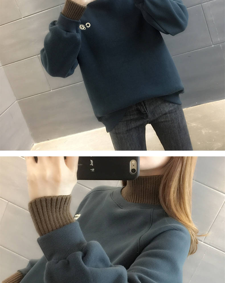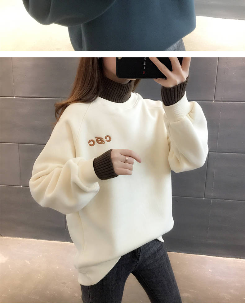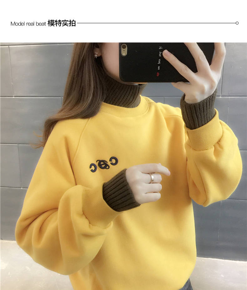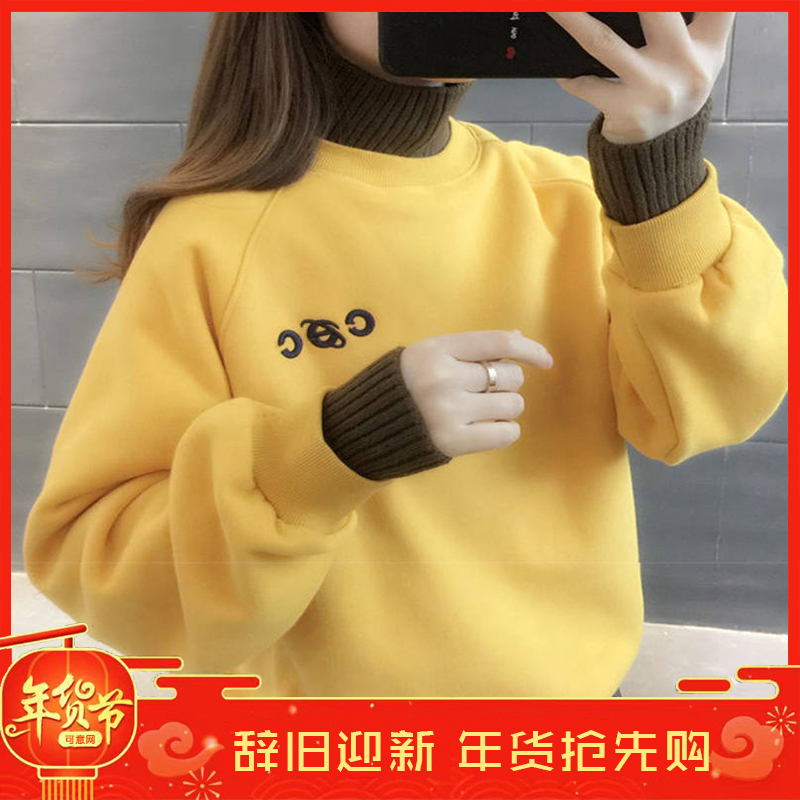 商品名稱:加絨衛(wèi)衣女2019秋冬新款半高領(lǐng)假兩件寬松韓版加厚時尚上衣外套潮