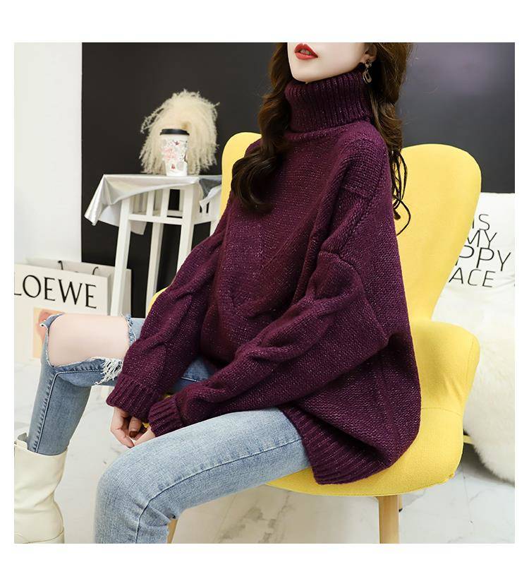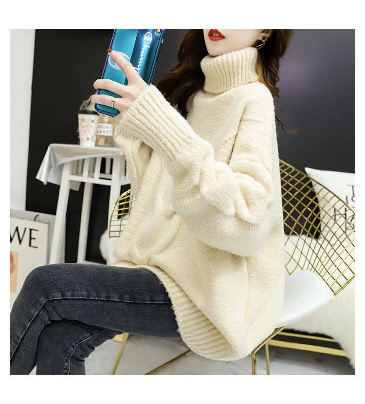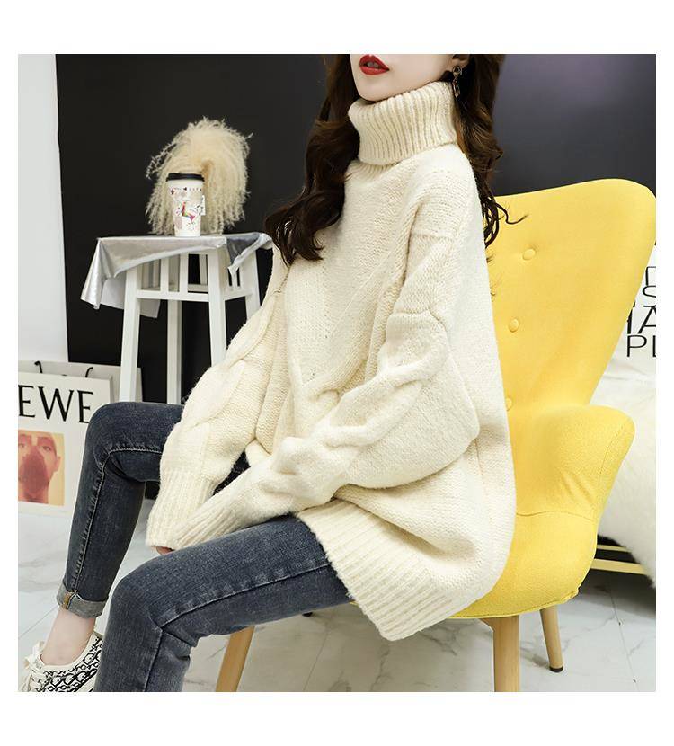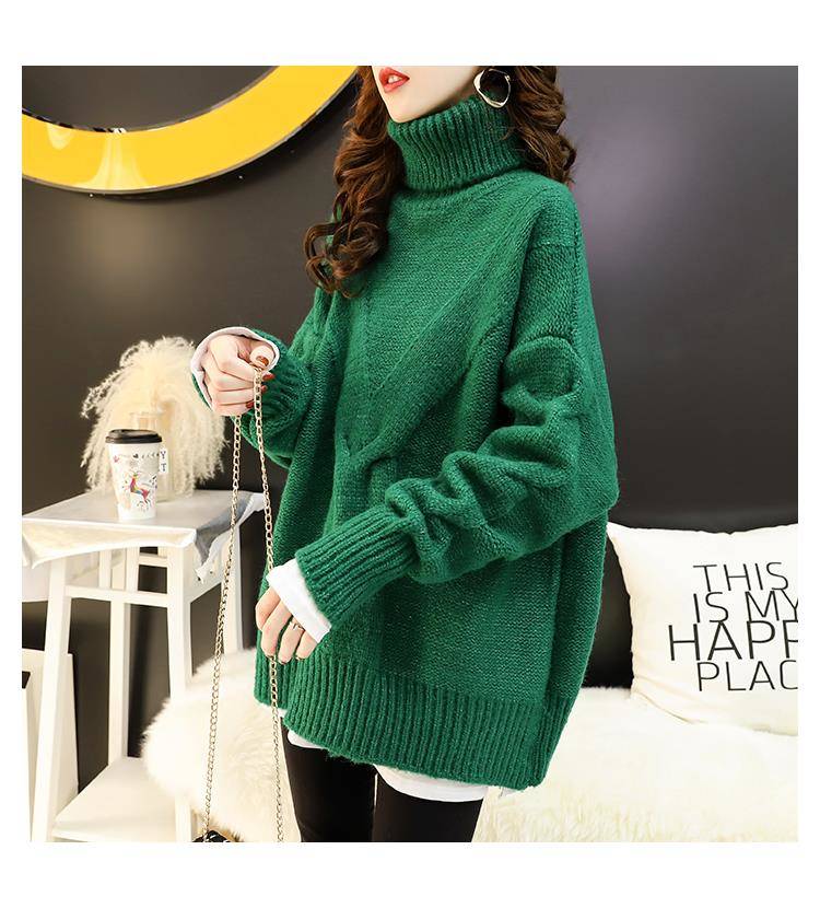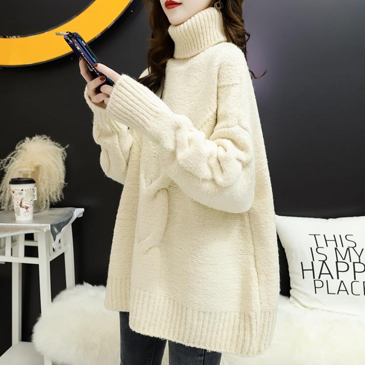 商品名稱:不加絨麻花高領(lǐng)毛衣套頭女加厚慵懶風寬松針織衫2019新款冬