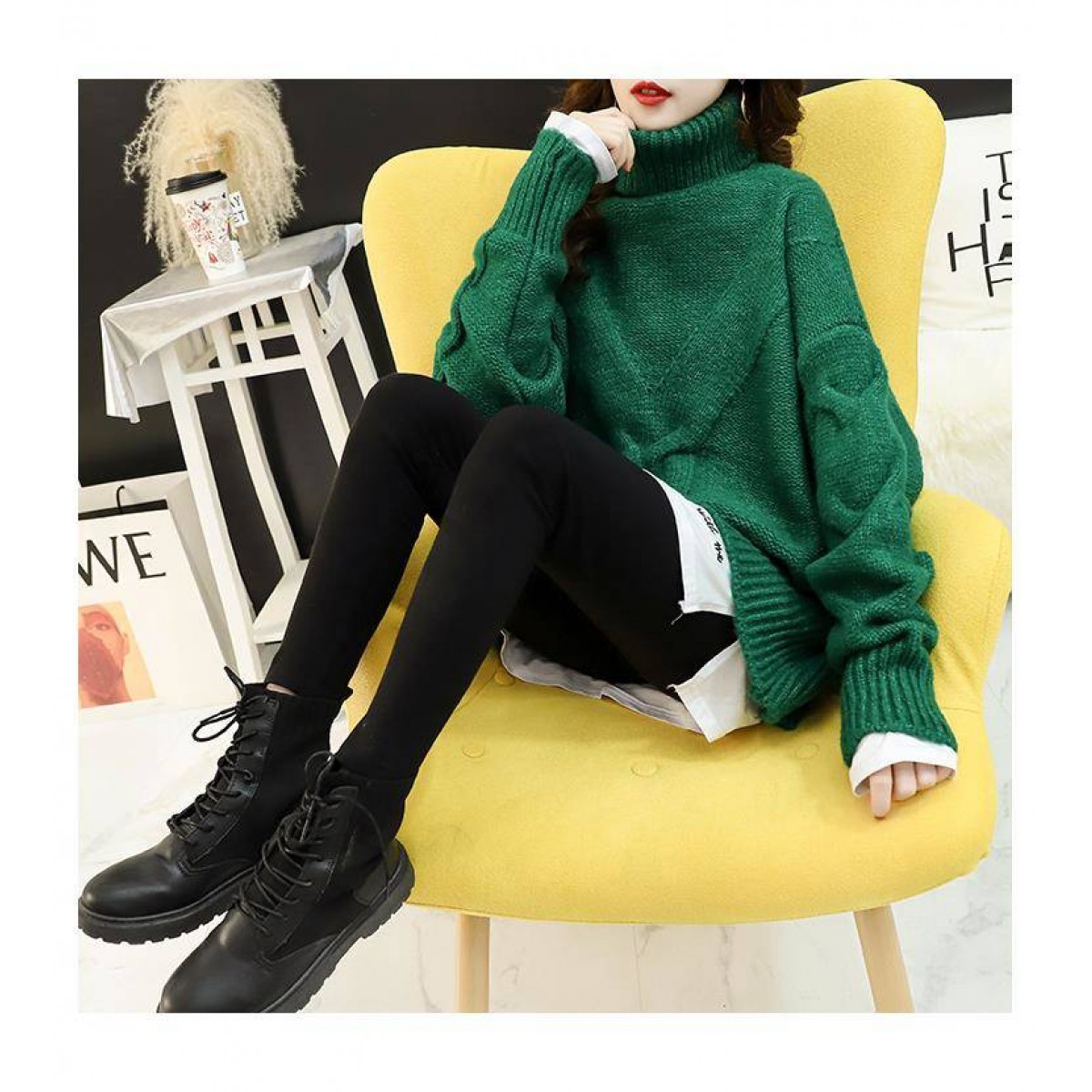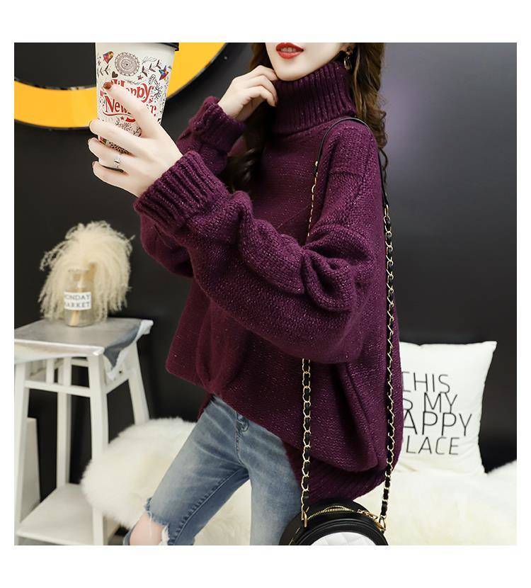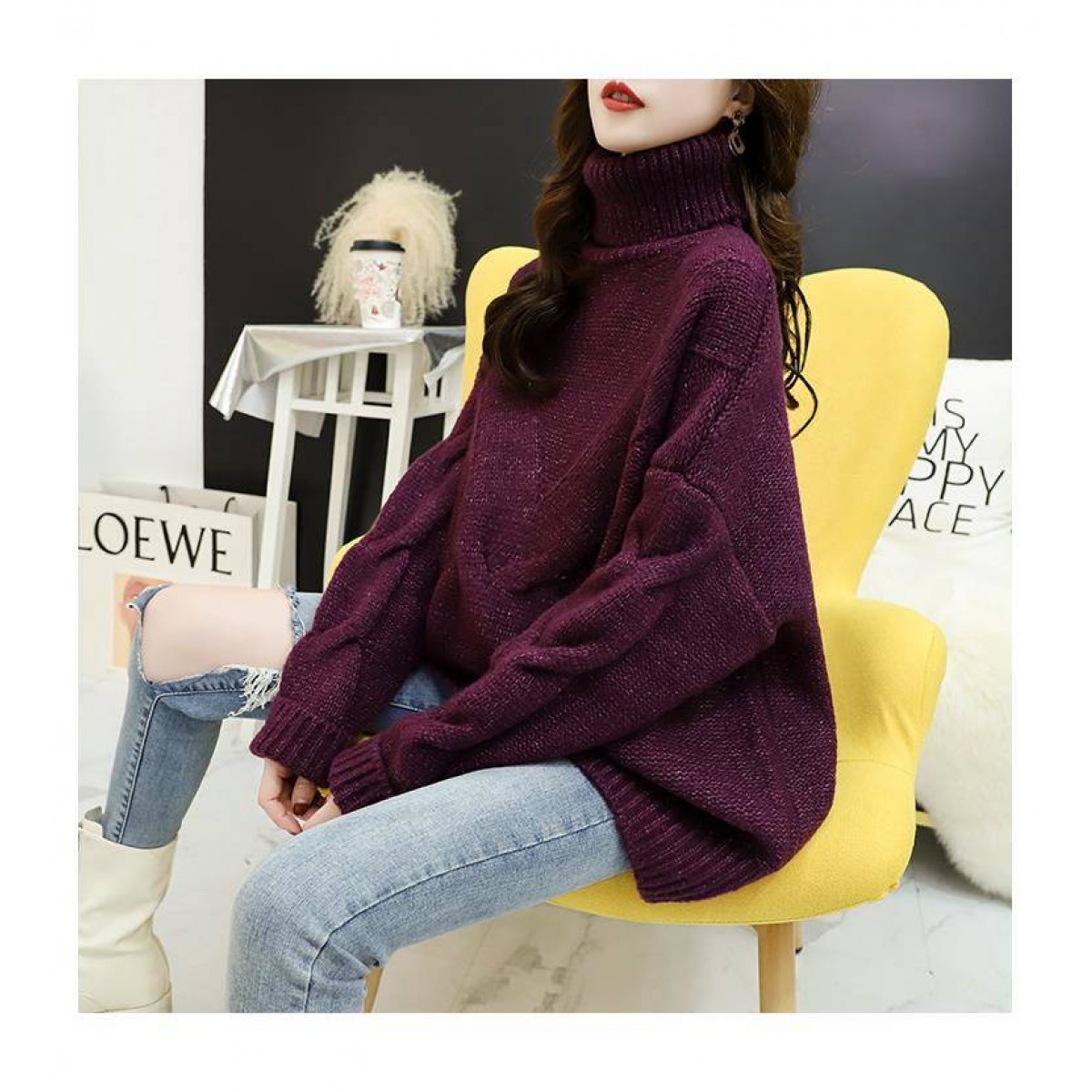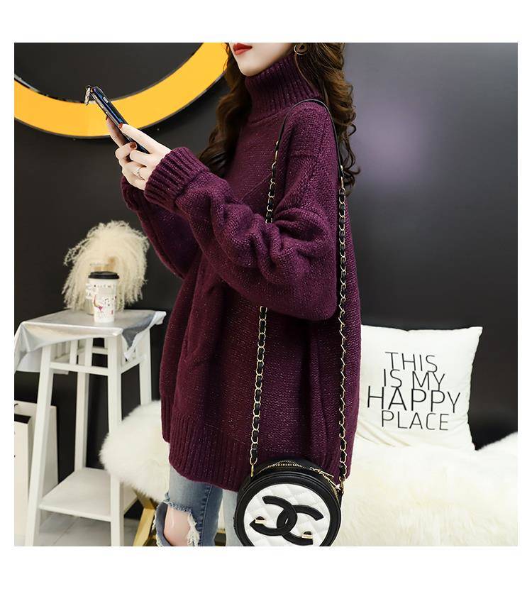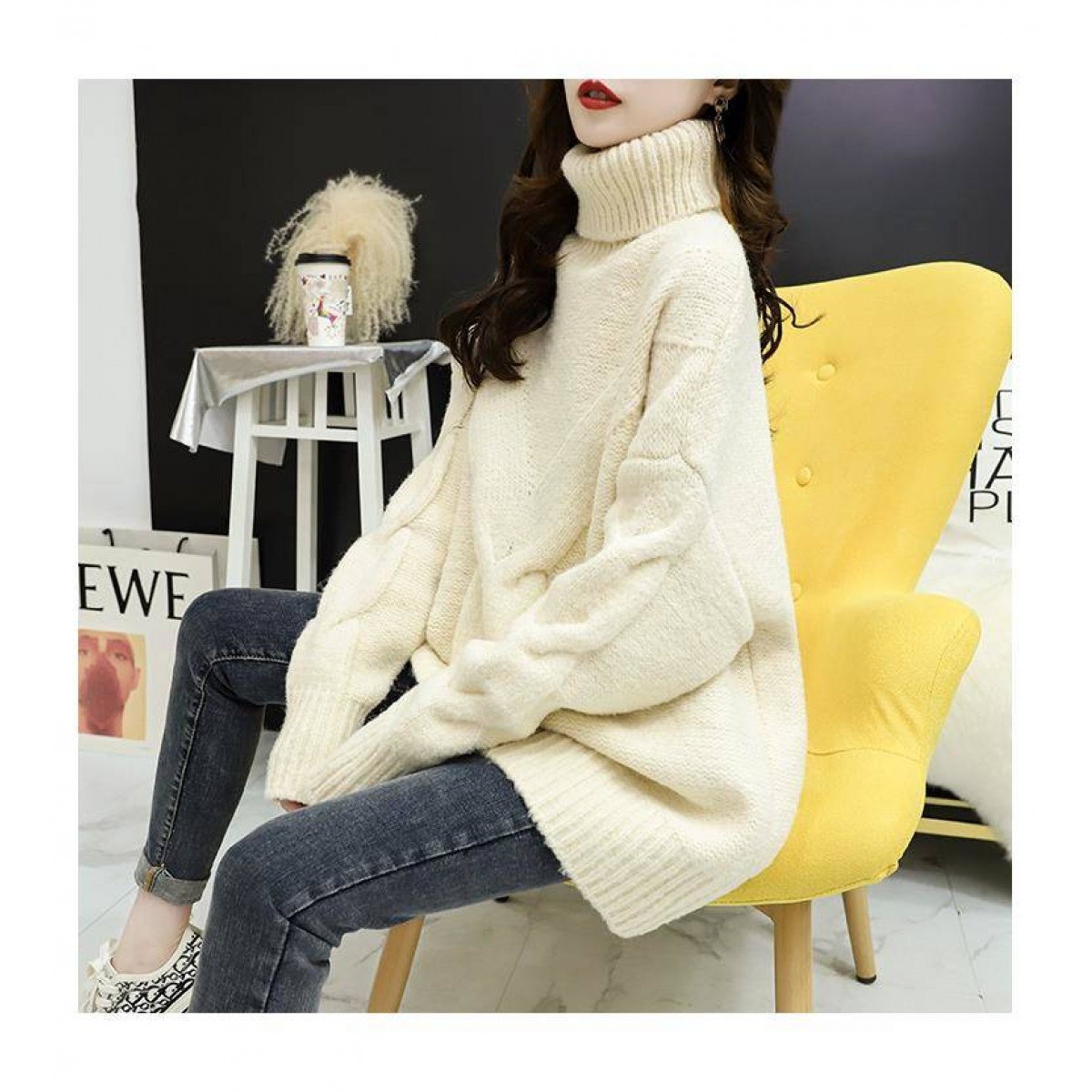 商品名稱:不加絨麻花高領(lǐng)毛衣套頭女加厚慵懶風寬松針織衫2019新款冬