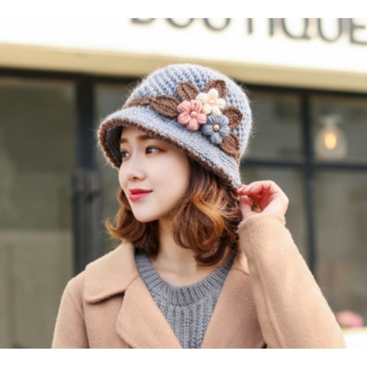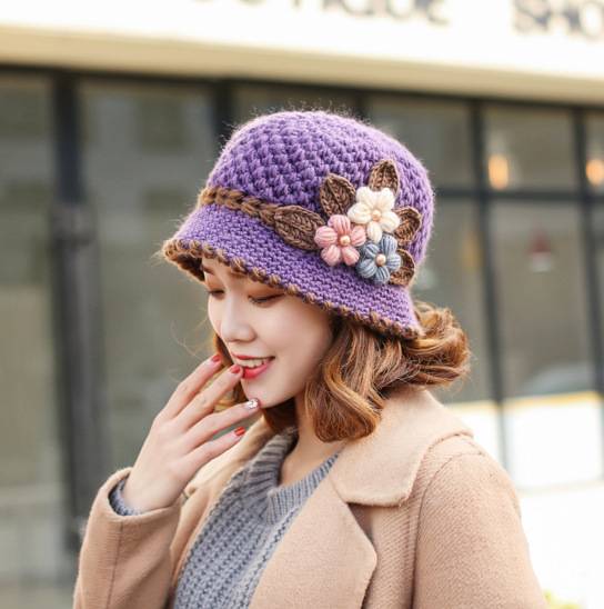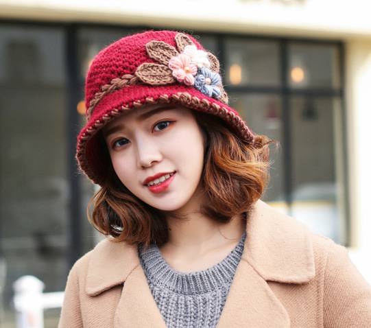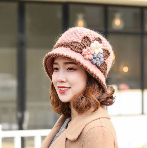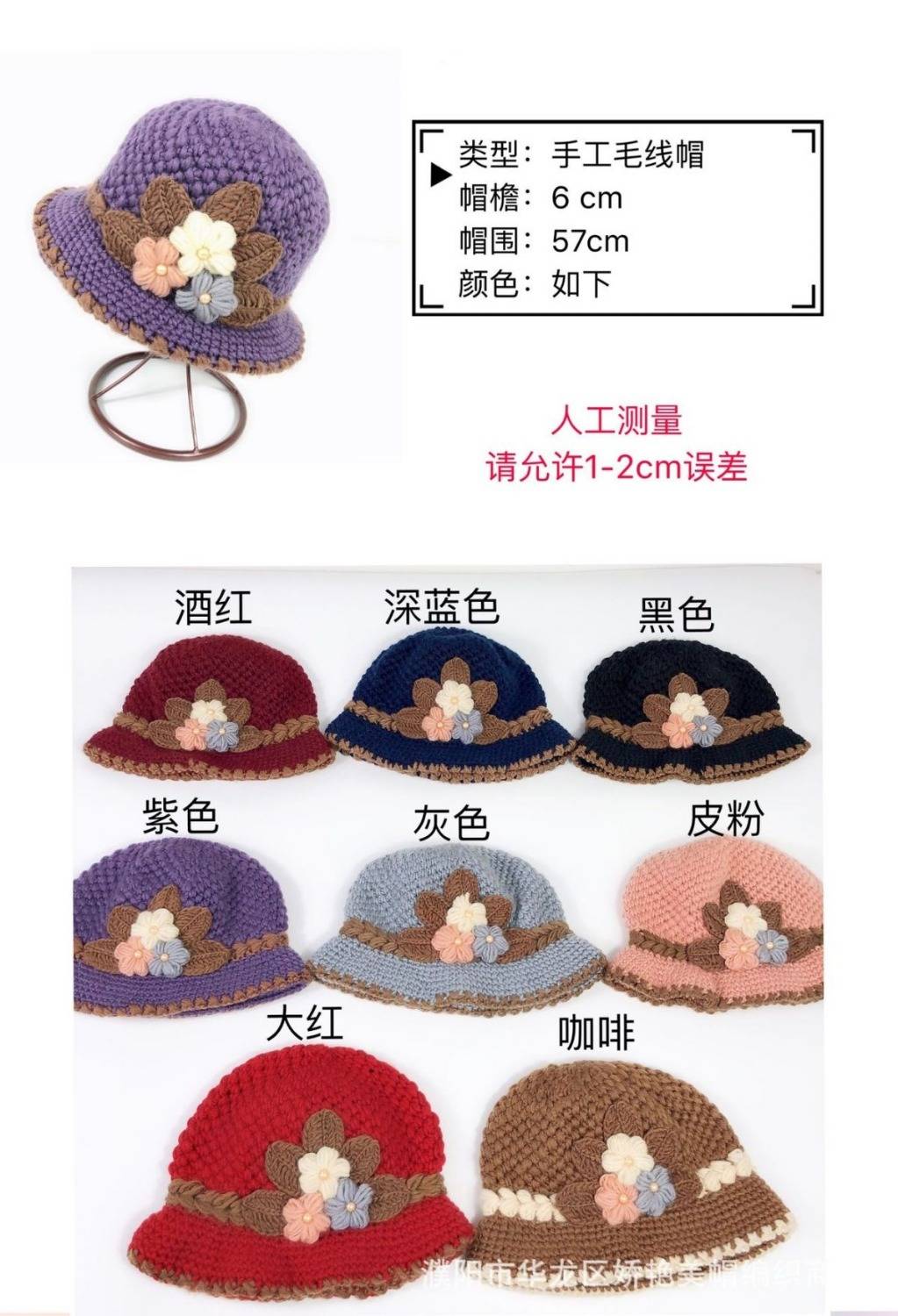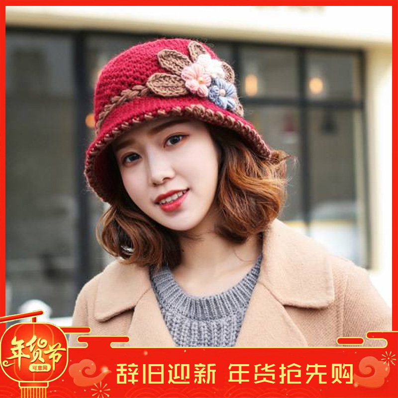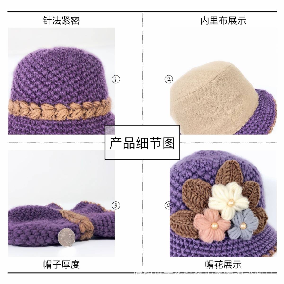 商品名稱:針織帽女士秋冬毛線帽經(jīng)典冬季女帽子花朵加絨漁夫帽盆帽媽媽冬帽