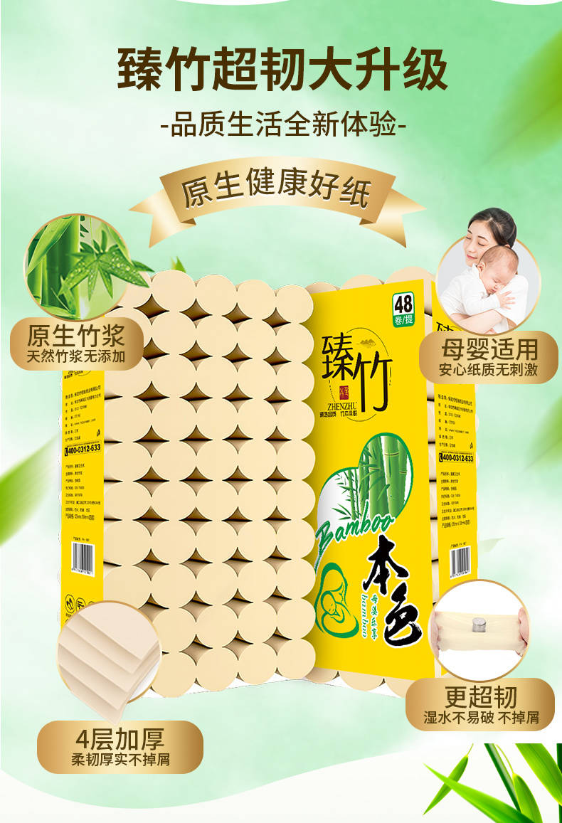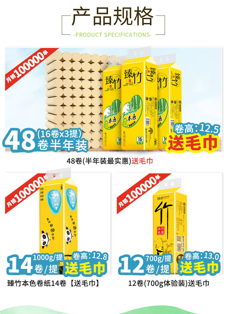 商品名稱:【加量裝贈毛巾】48卷/14卷/12卷竹漿本色衛(wèi)生紙卷紙批發(fā)家用紙巾