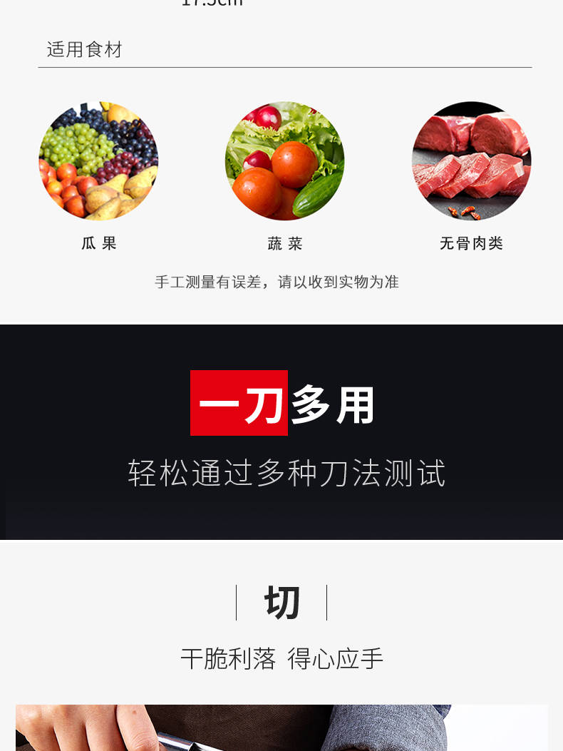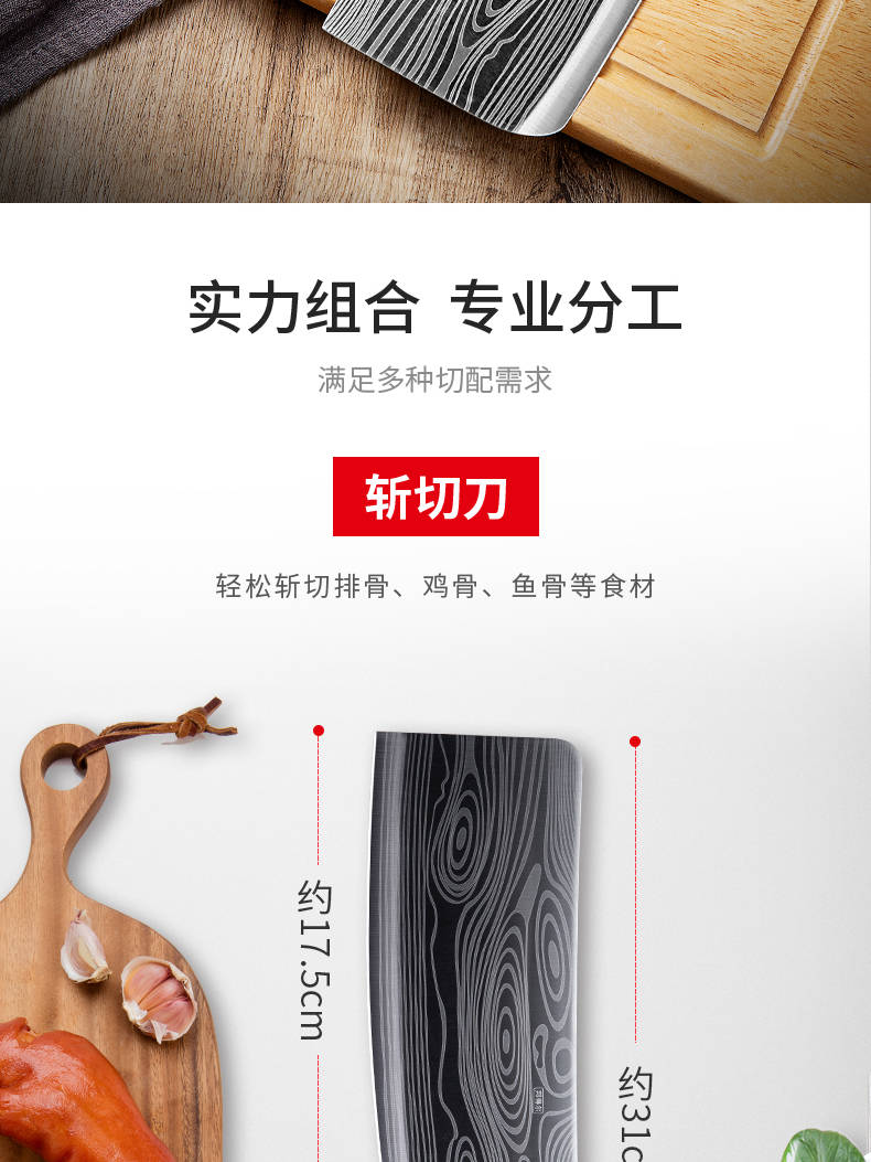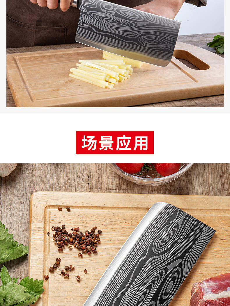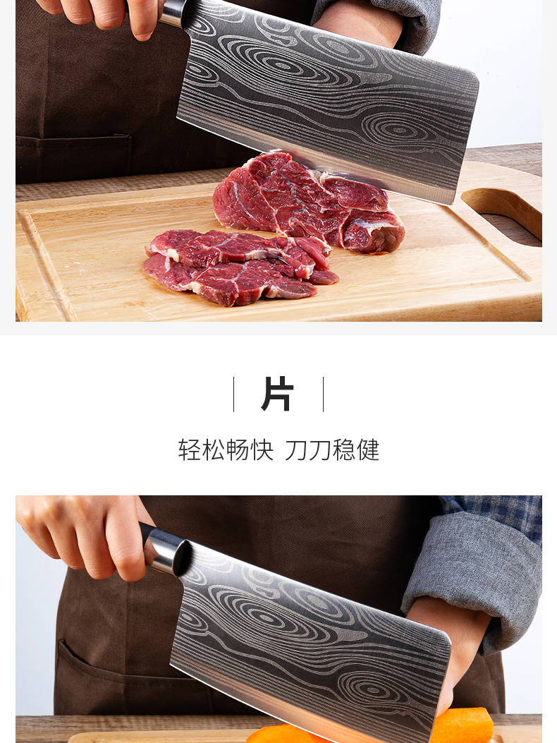 商品名稱:家用廚房菜刀德國(guó)工藝不銹鋼切肉刀切片刀鋒利廚師砍骨刀免磨刀具
