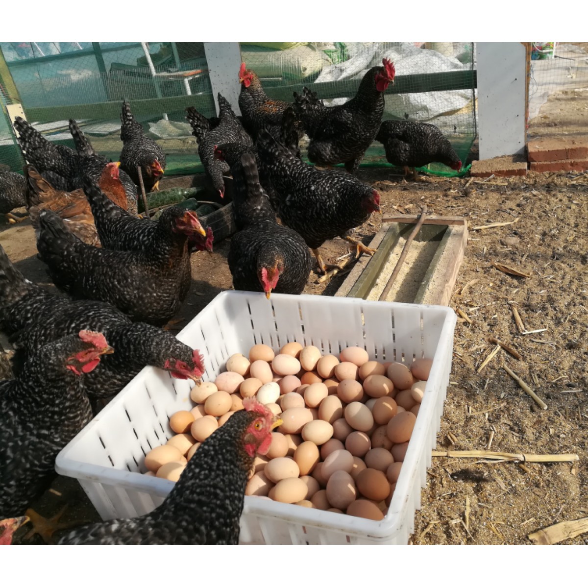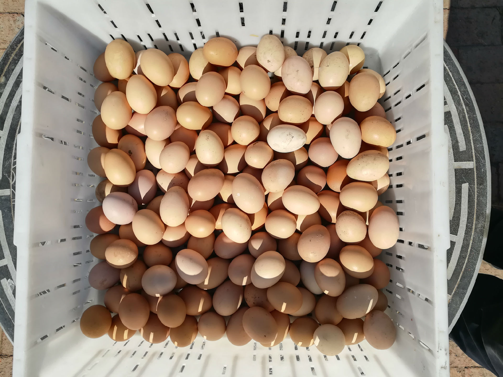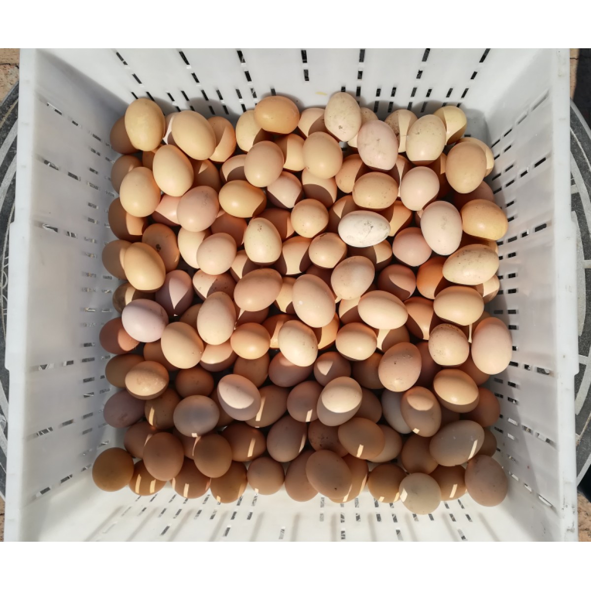 小雞吃的是玉米渣子和油葵渣子,雞蛋的外皮看起來不是特別光鮮。