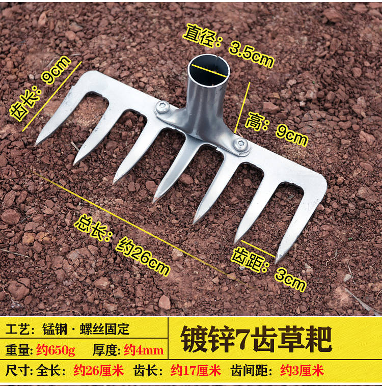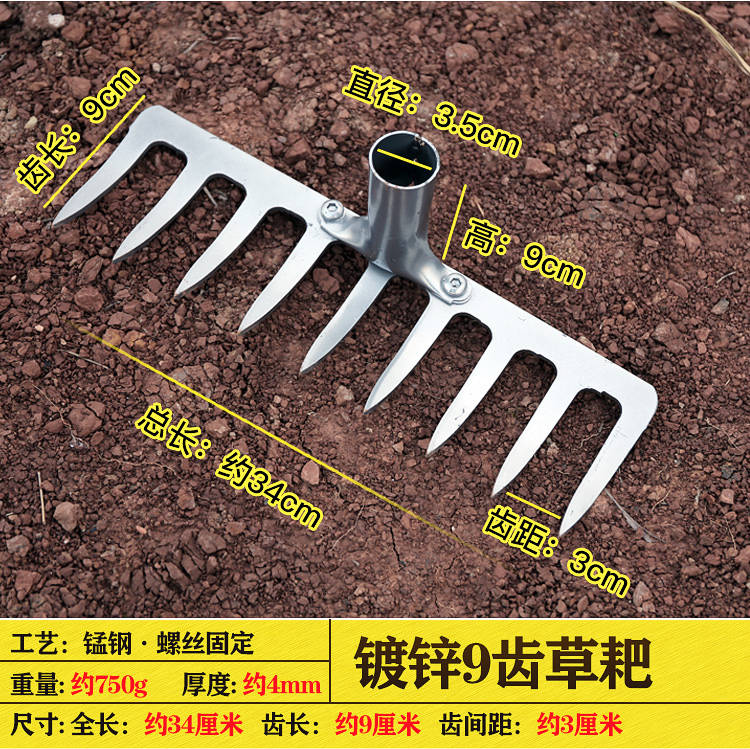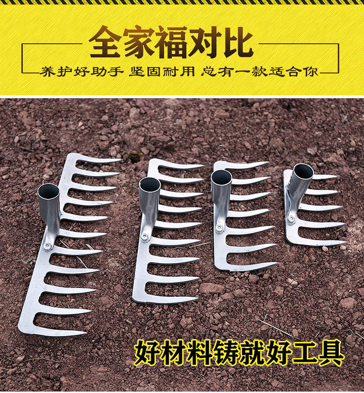 商品名稱:農(nóng)用釘耙多功能鋼扒子鐵耙子小耙子摟草松土種菜園林工具四齒釘耙