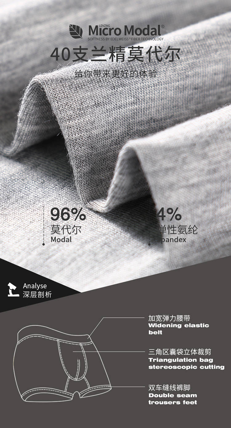 莫代爾男士?jī)?nèi)褲男平角褲青年男生性感透氣中腰四角褲