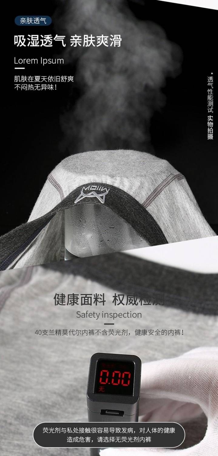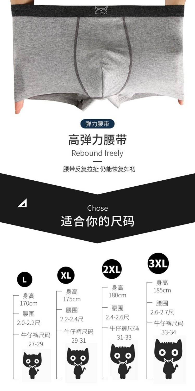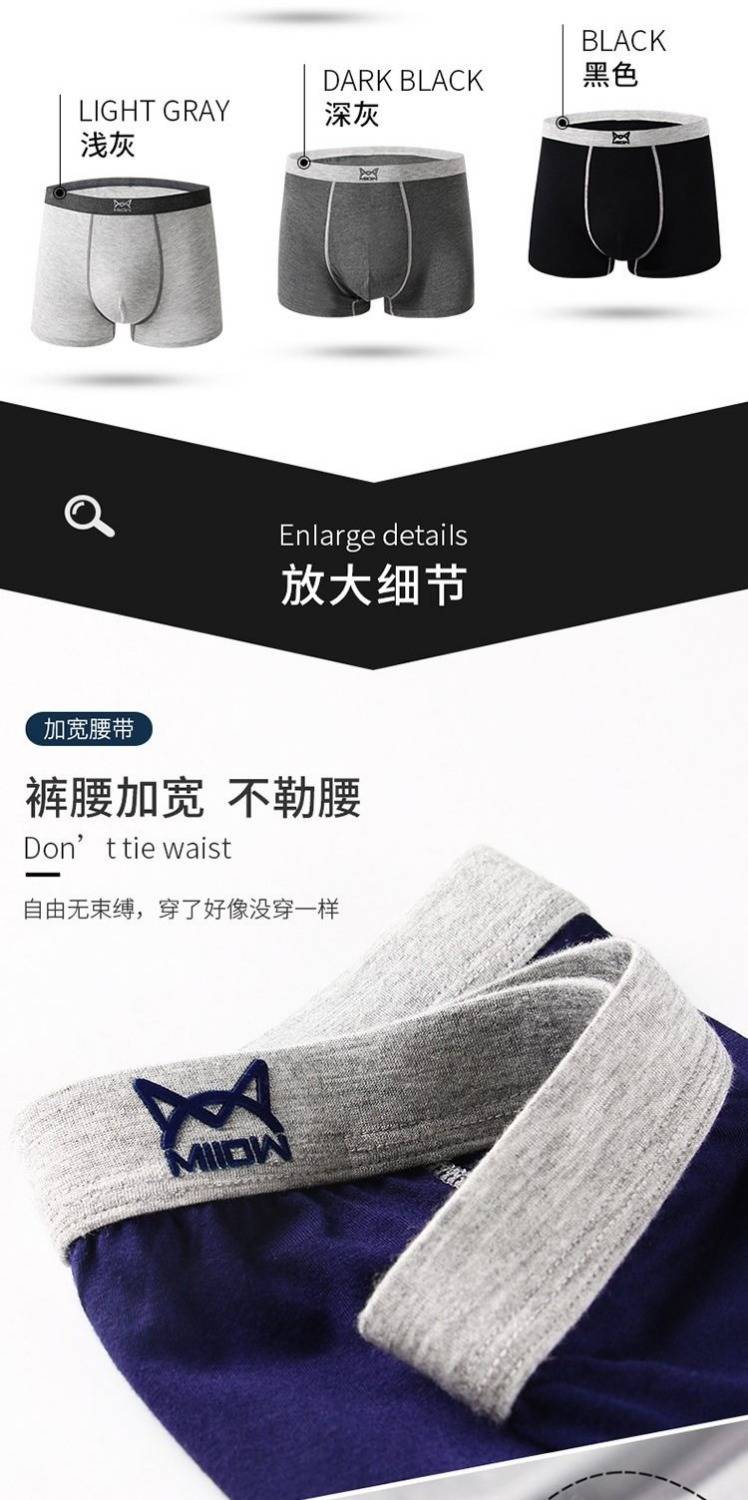商品名稱:莫代爾男士?jī)?nèi)褲男平角褲青年男生性感透氣中腰四角褲