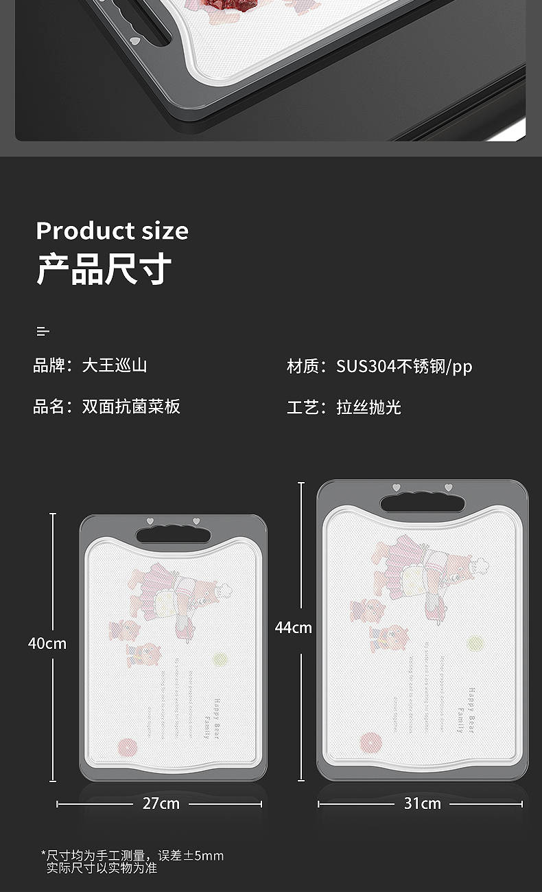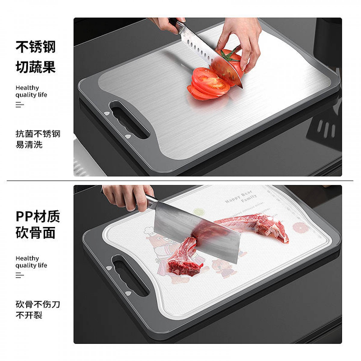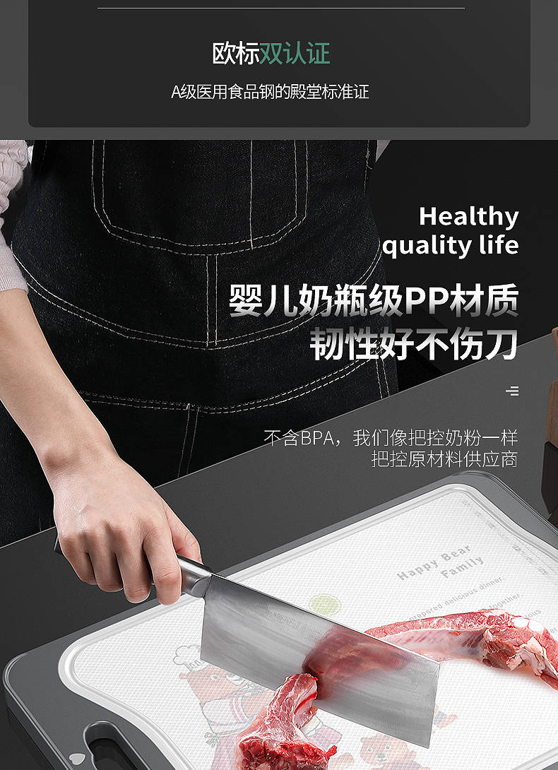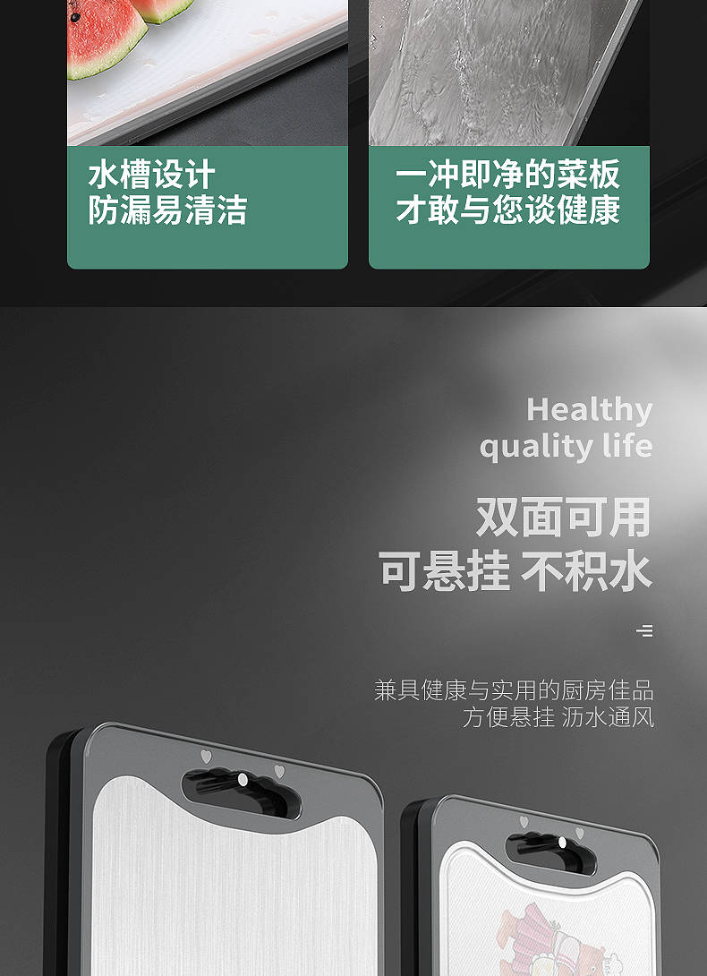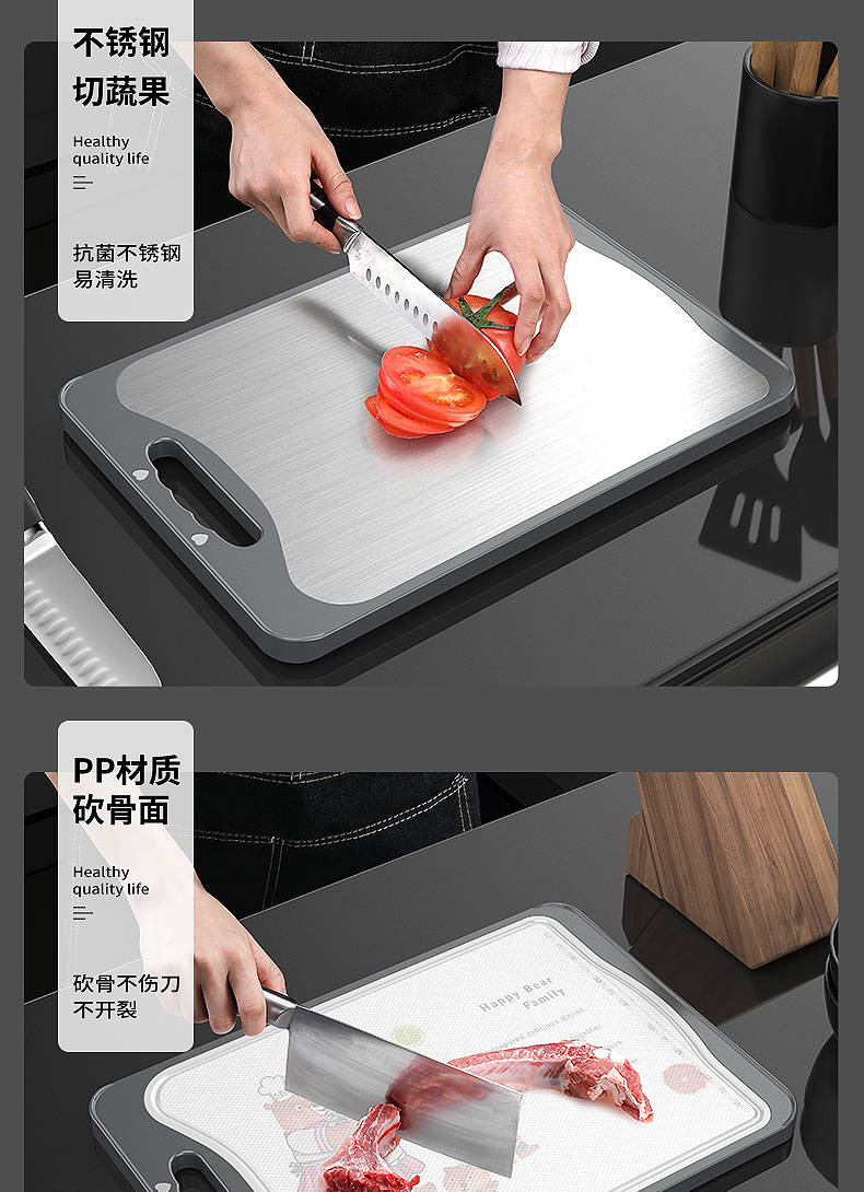 商品名稱:德國304不銹鋼雙面切菜板刀板抗菌防霉家用砧板揉搟面水果板案板