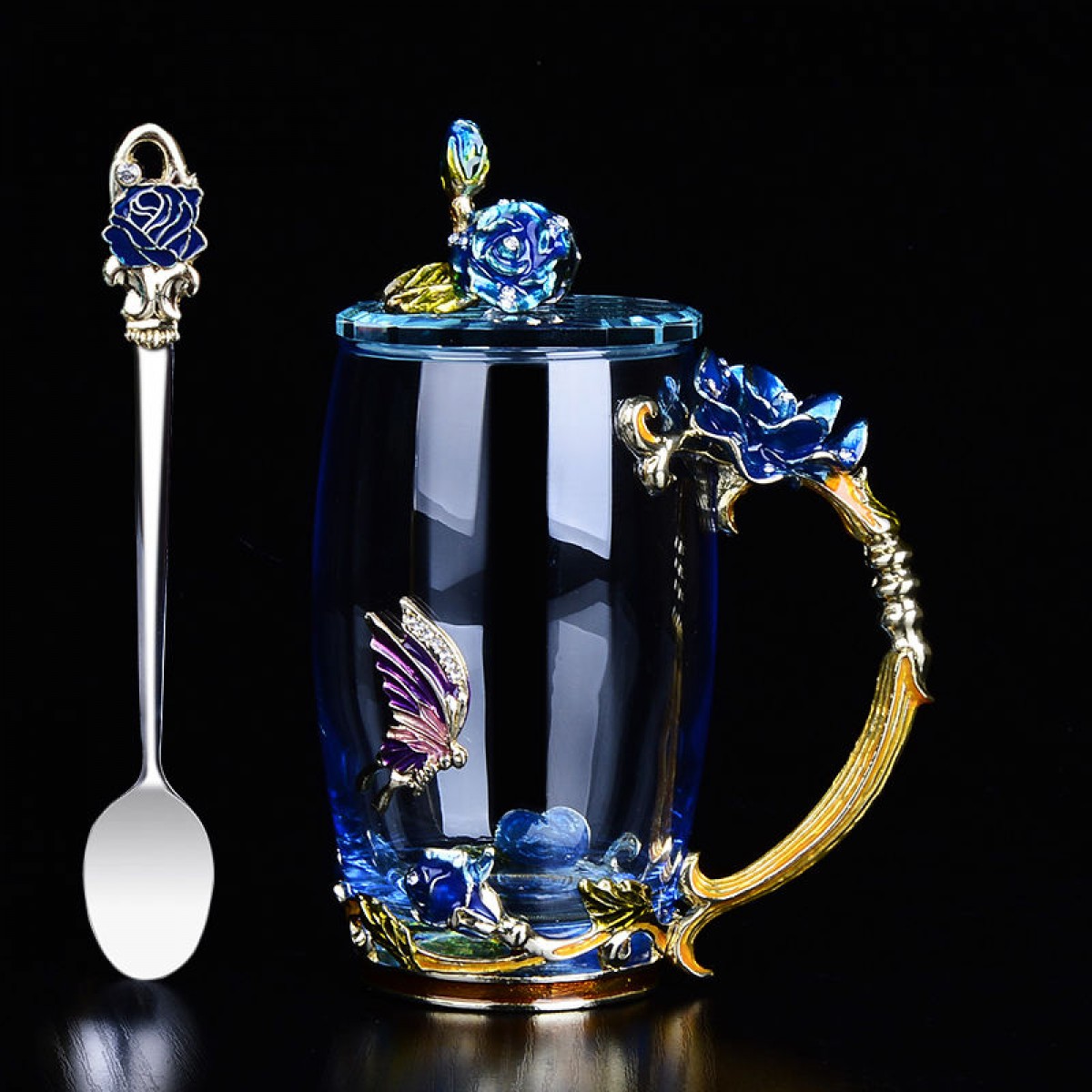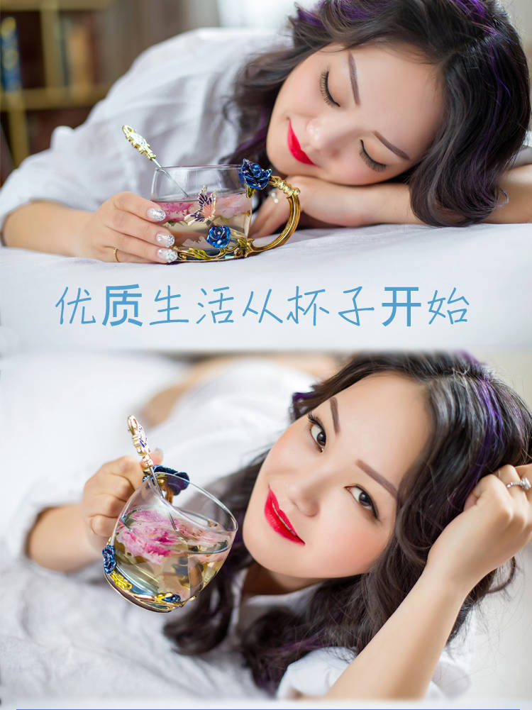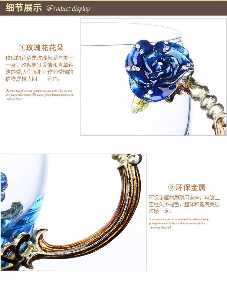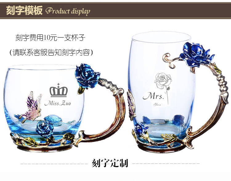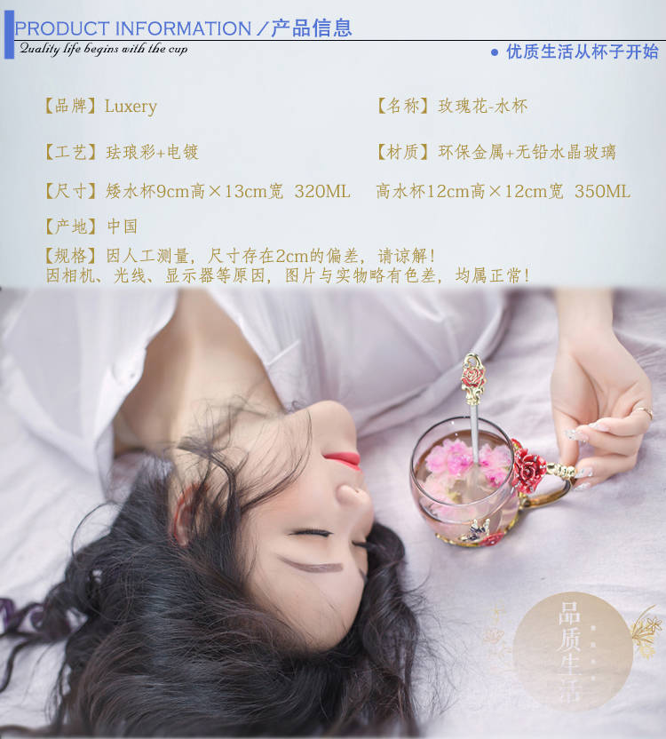 商品名稱:琺瑯彩水杯耐熱玻璃杯女洛施花舍玫瑰花茶杯家用杯子套裝創(chuàng)意禮物