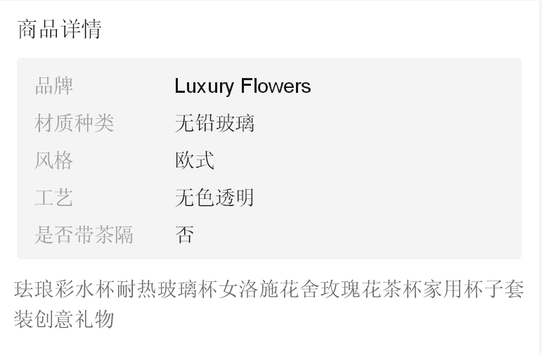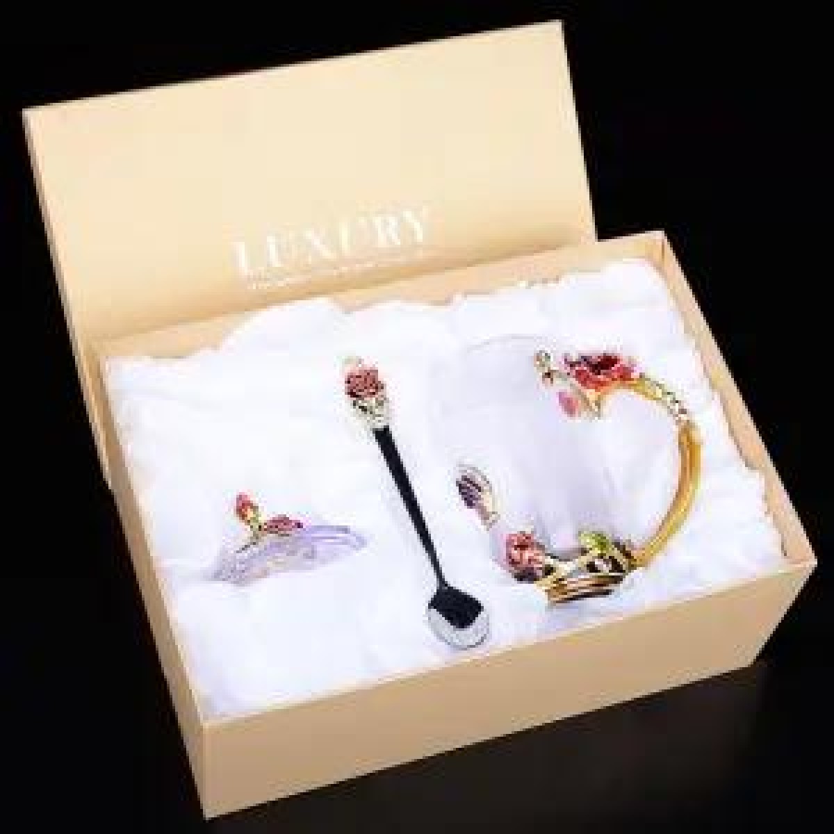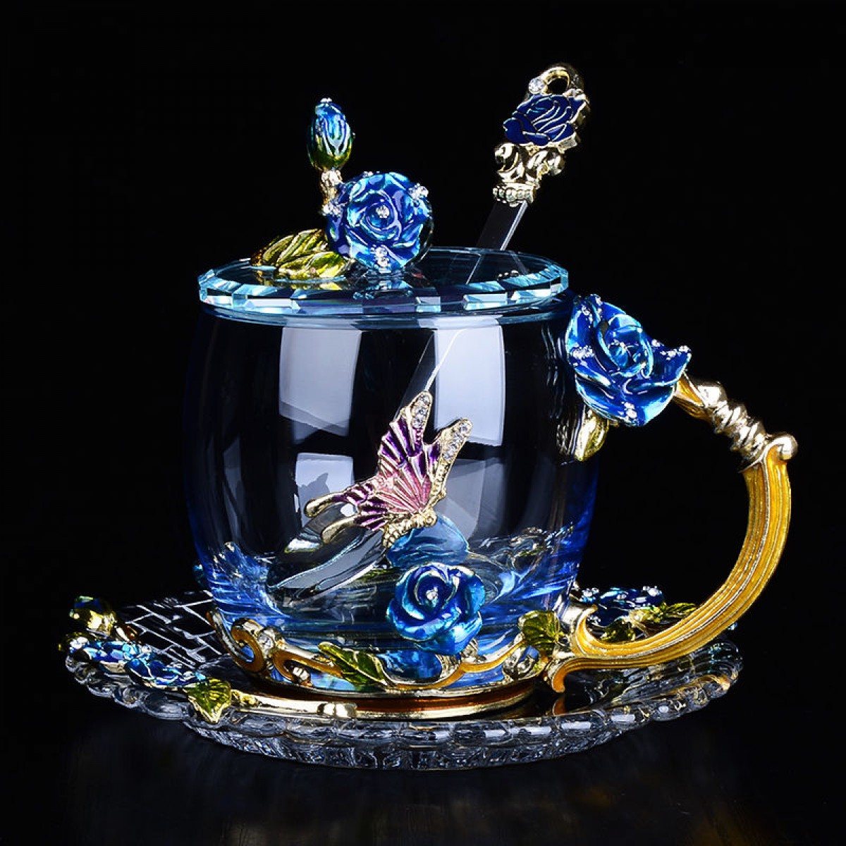 商品名稱:琺瑯彩水杯耐熱玻璃杯女洛施花舍玫瑰花茶杯家用杯子套裝創(chuàng)意禮物