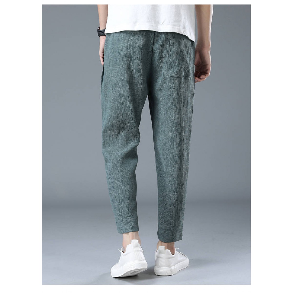 商品名稱:2020夏季亞麻超薄透氣冰絲九分褲男寬松直筒褲男士休閑褲百搭潮流