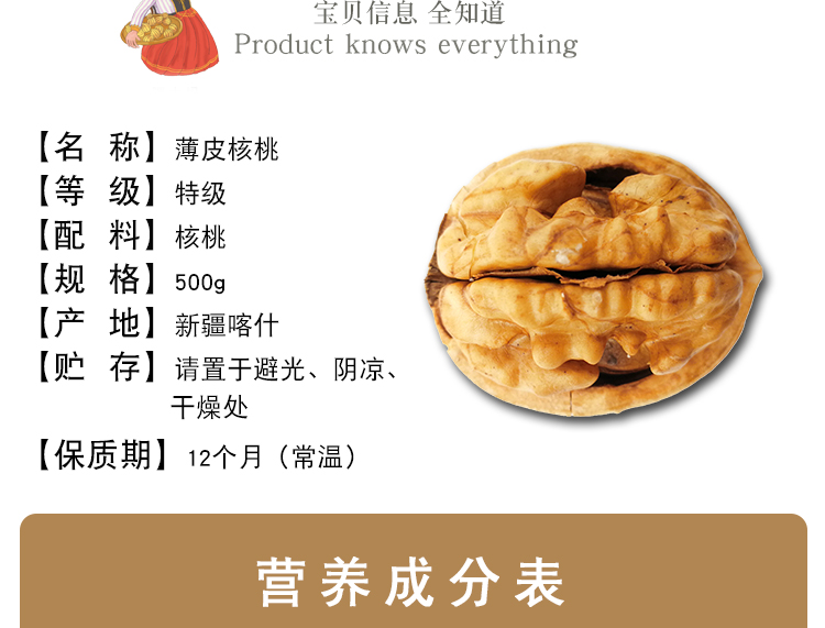 商品名稱:新疆喀什 疆果果 薄皮核桃500g/袋
